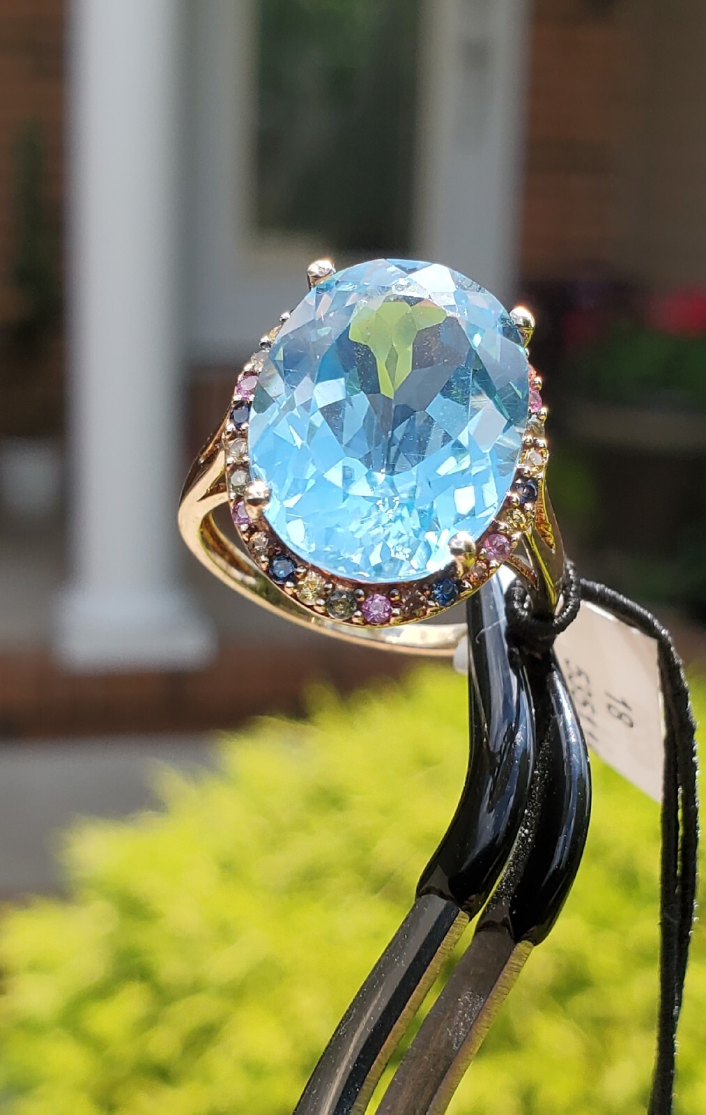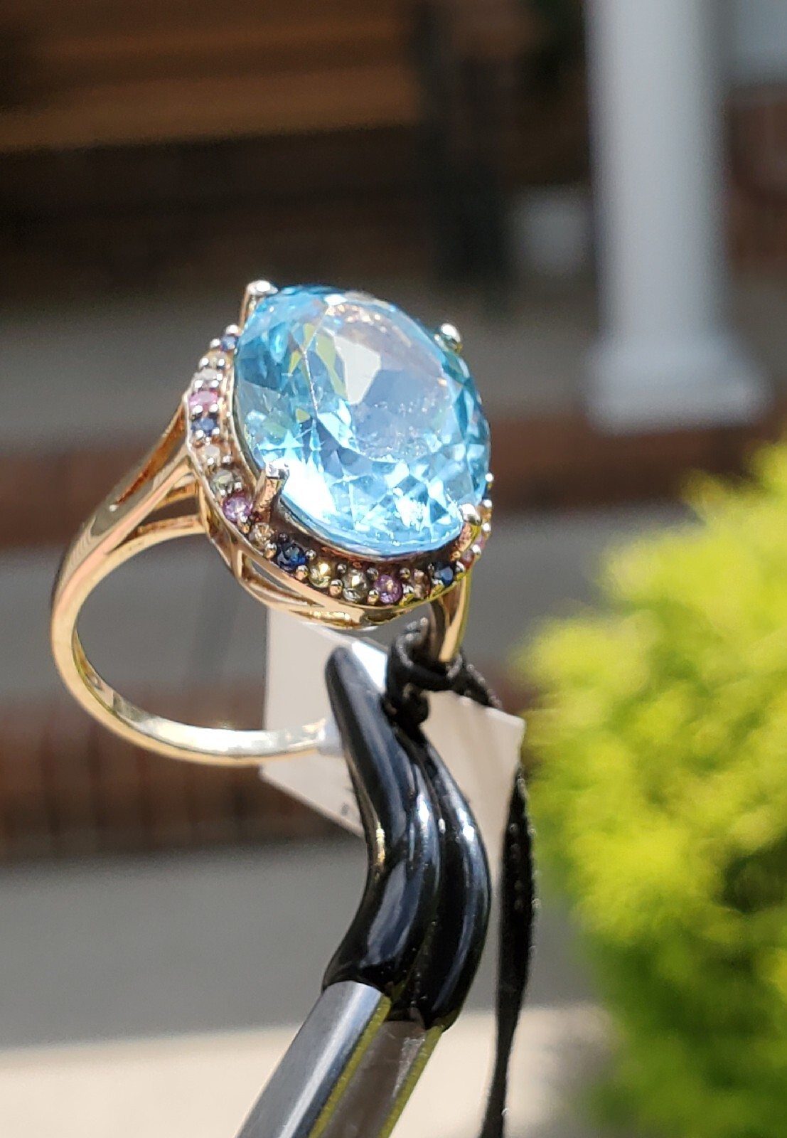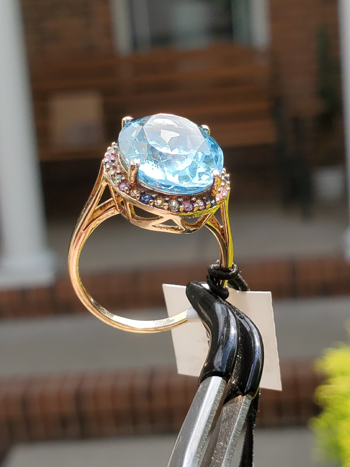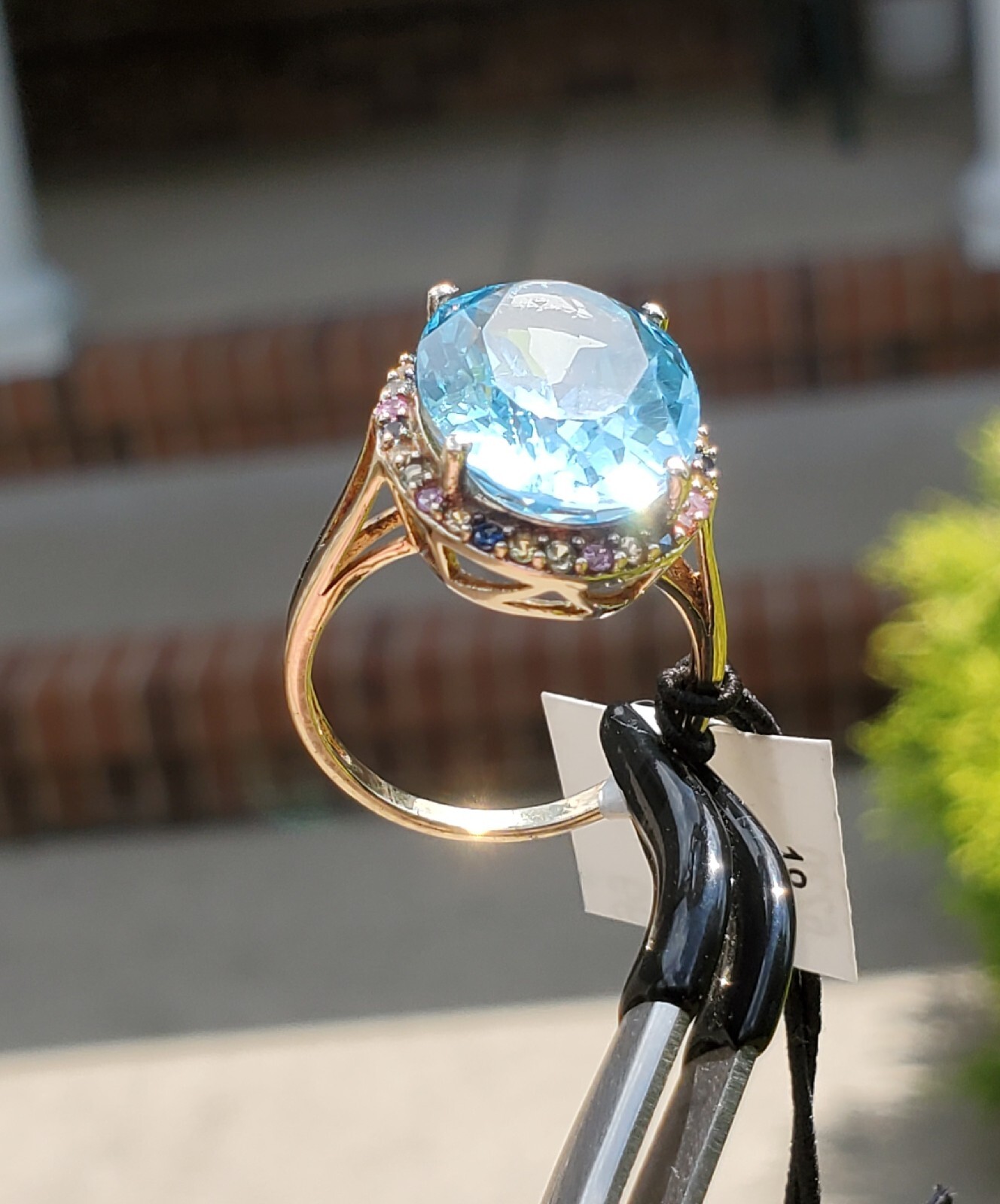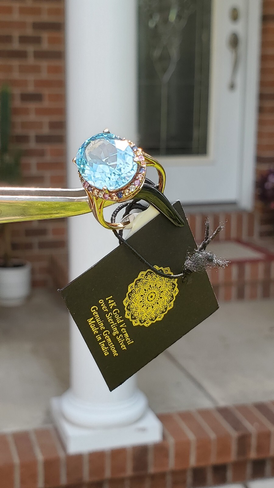 как выглядит 14K Vermeil Over Sterling Silver Natural Blue Topaz Ring Sz 7.5 New фото