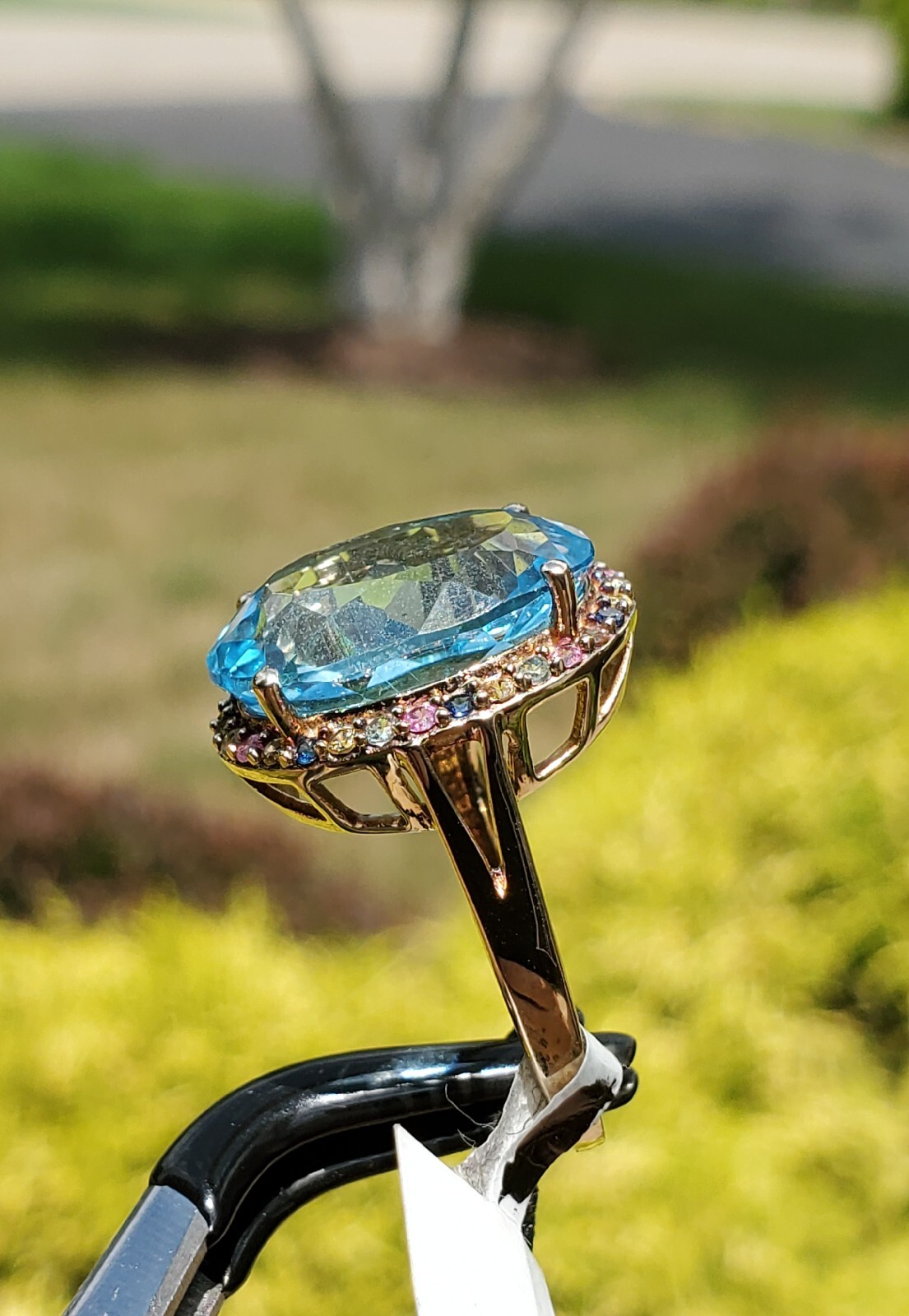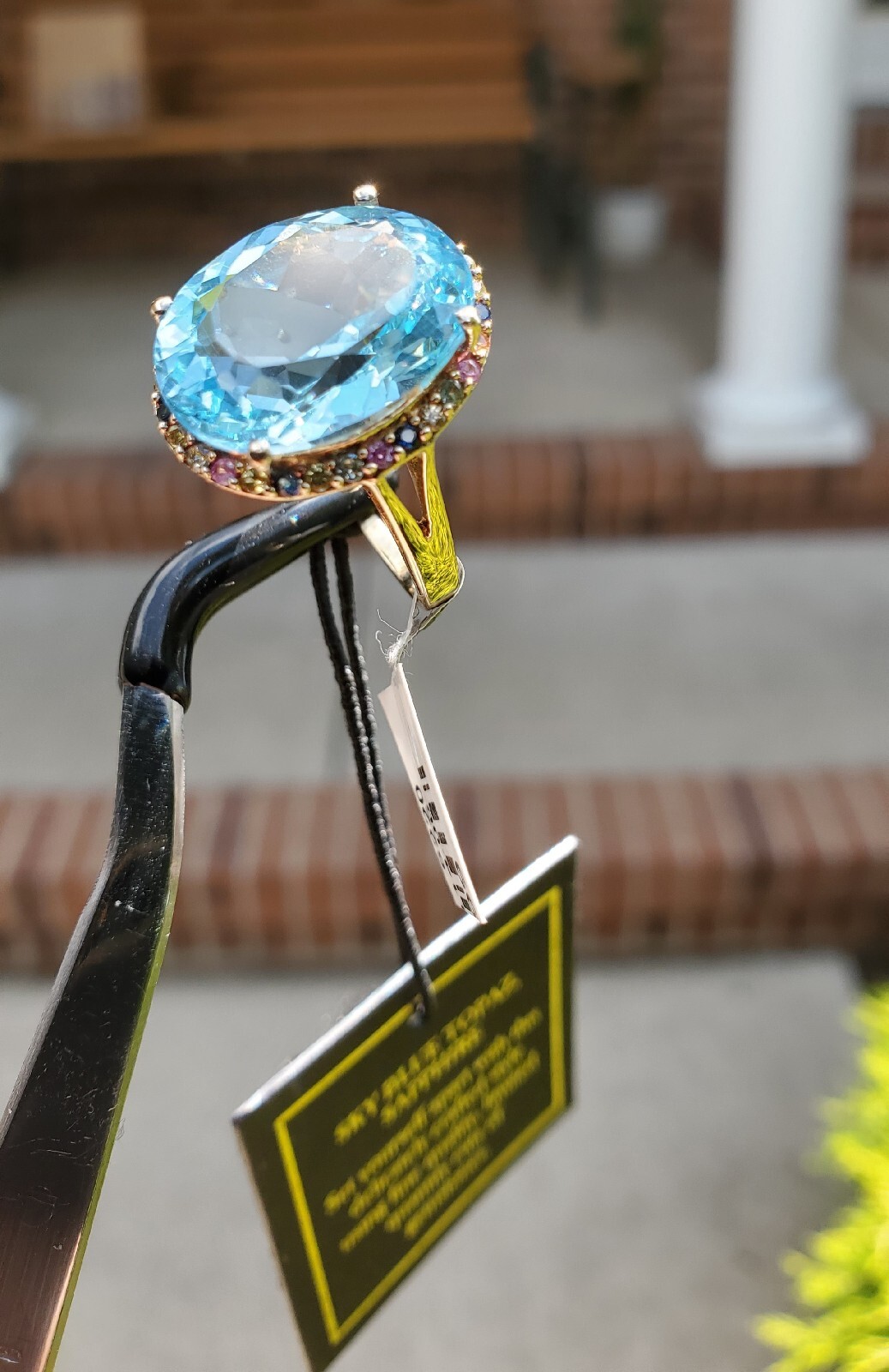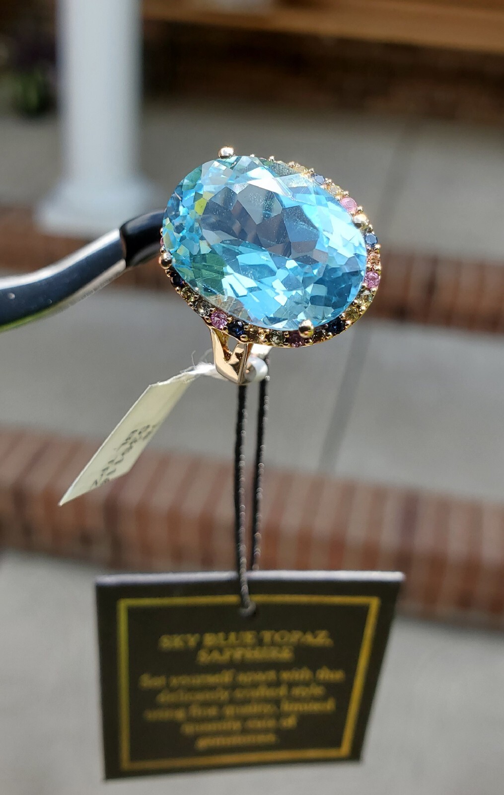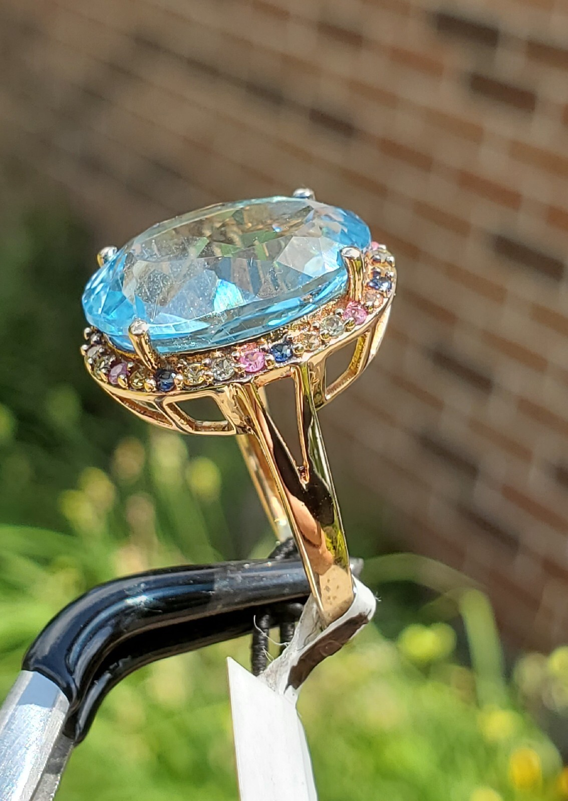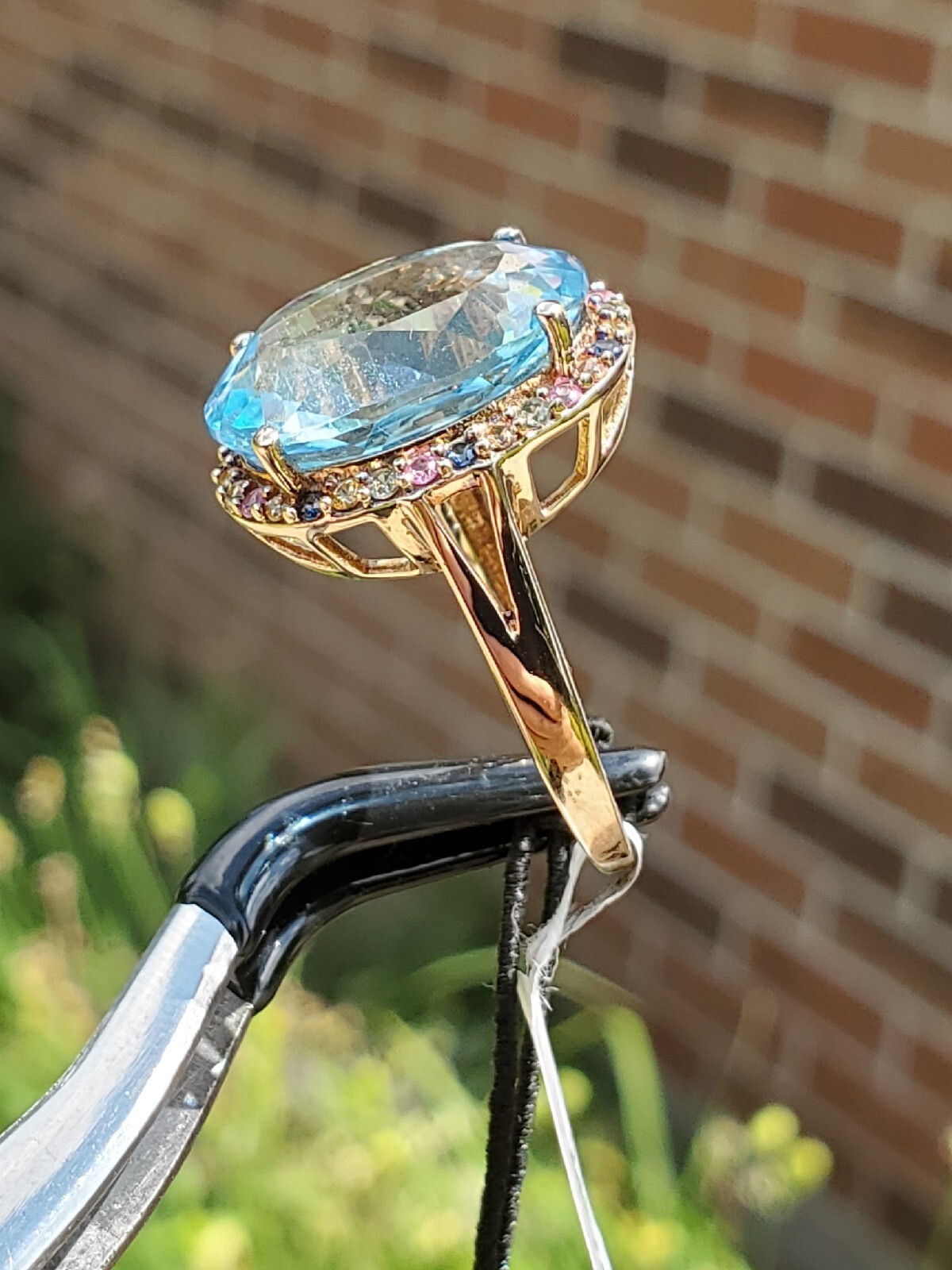 как выглядит 14K Vermeil Over Sterling Silver Natural Blue Topaz Ring Sz 7.5 New фото