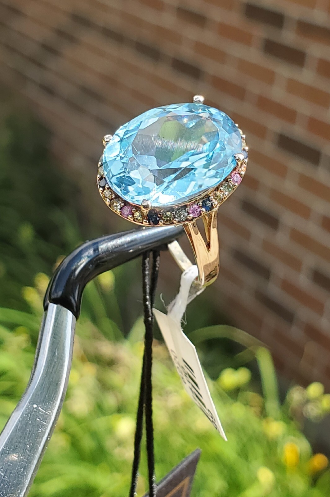14K Vermeil Over Sterling Silver Natural Blue Topaz Ring Sz 7.5 New