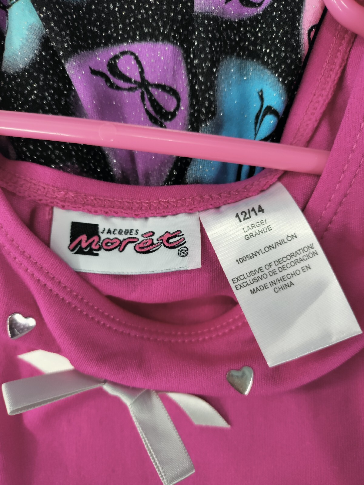 Girls Leotard, New, Brand Jacques Moret, Pink Black, Size 12/14