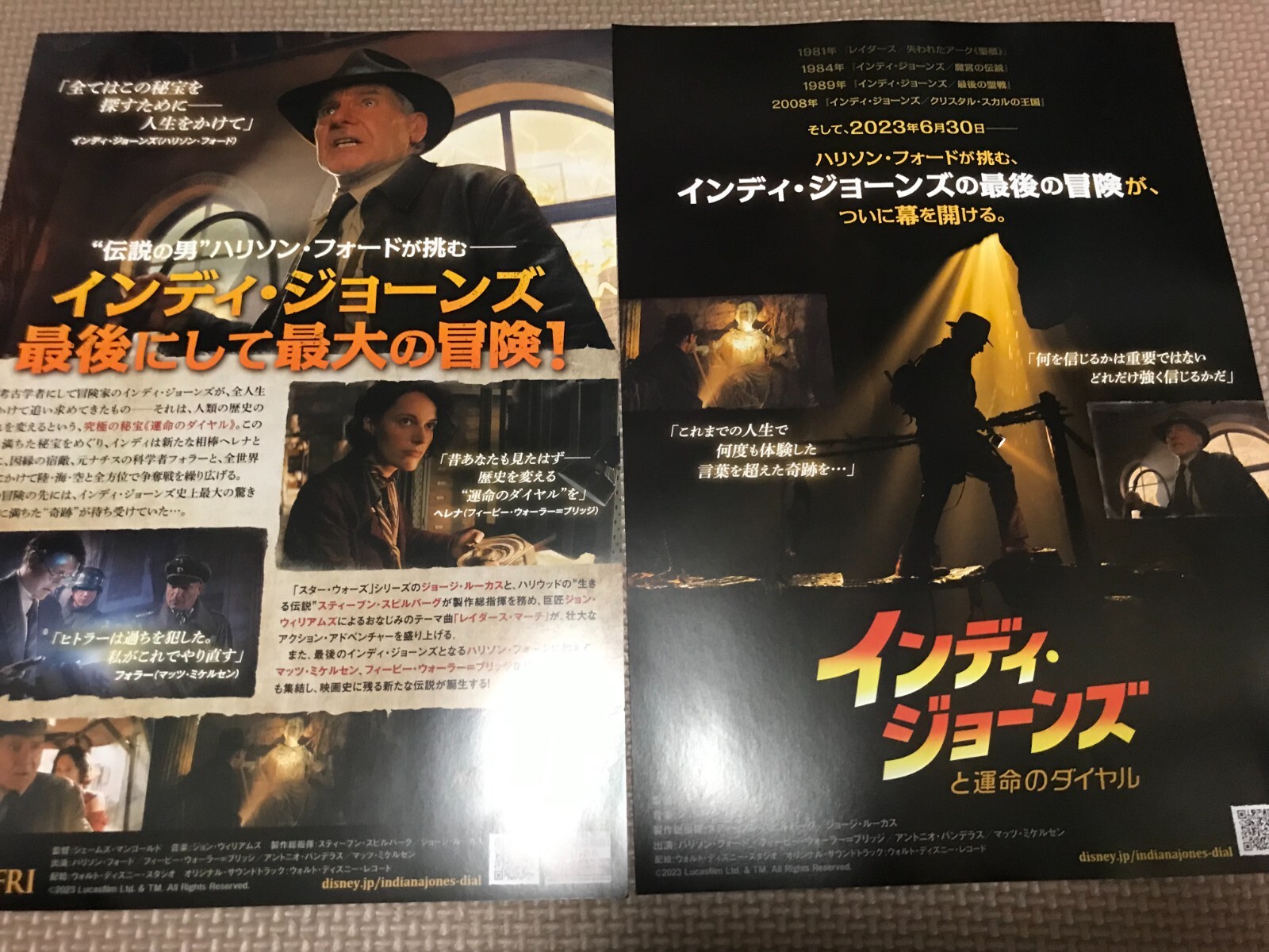 Set of2 Indiana Jones and the Dial of Des Movie Chirashi/Flyer/Poster Japan lot