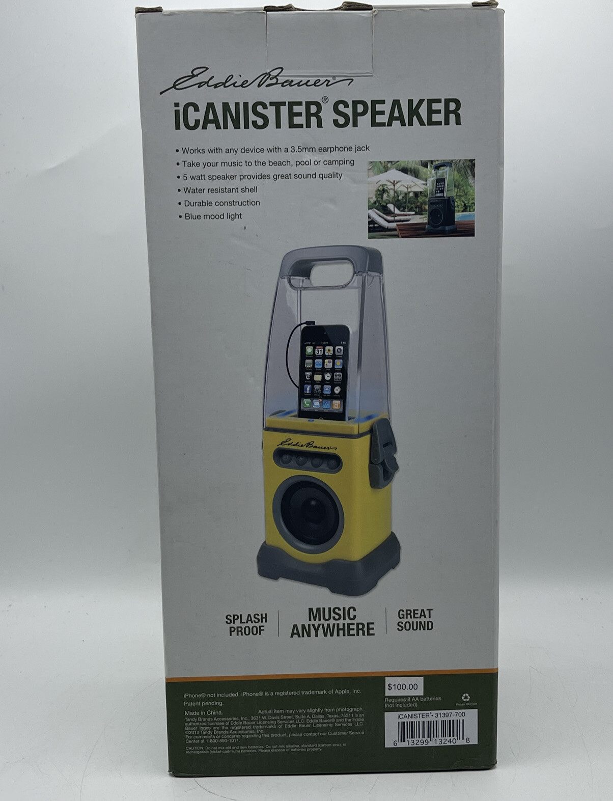 Eddie Bauer iCanister 5 Watt MP3 Speaker for iPhone Android Waterproof Yellow