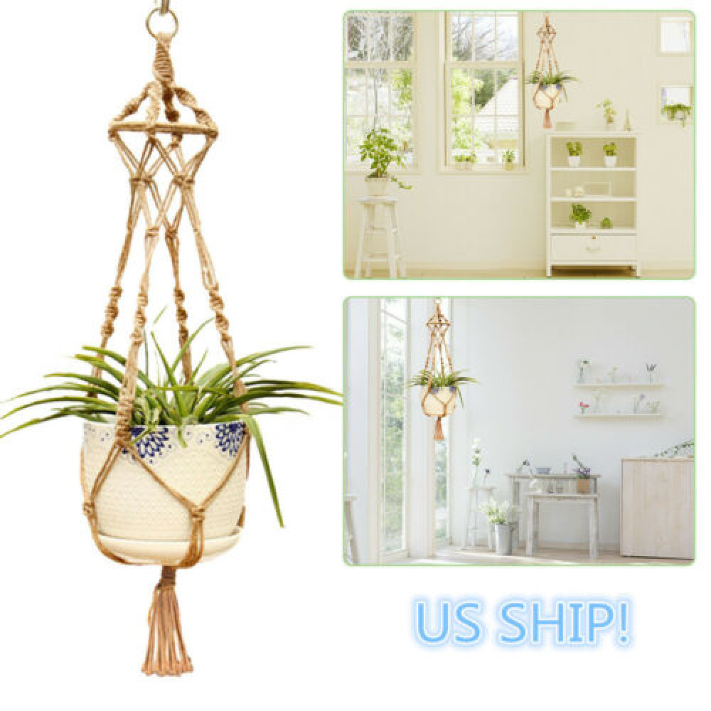 Large Pot Holder Macrame Plant Hanger Hemp Rope Braided Hanging Planter Basket