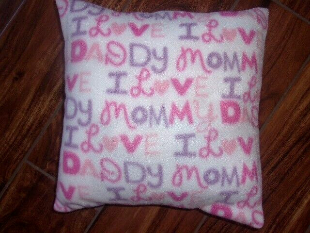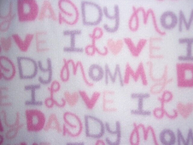 I LOVE MOMMY I LOVE DADDY PINK-BABY-BLANKET-FLEECE-CROCHET-EDGE- PILLOW COVER