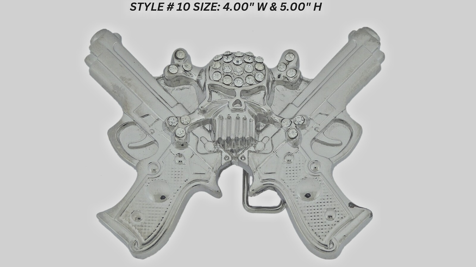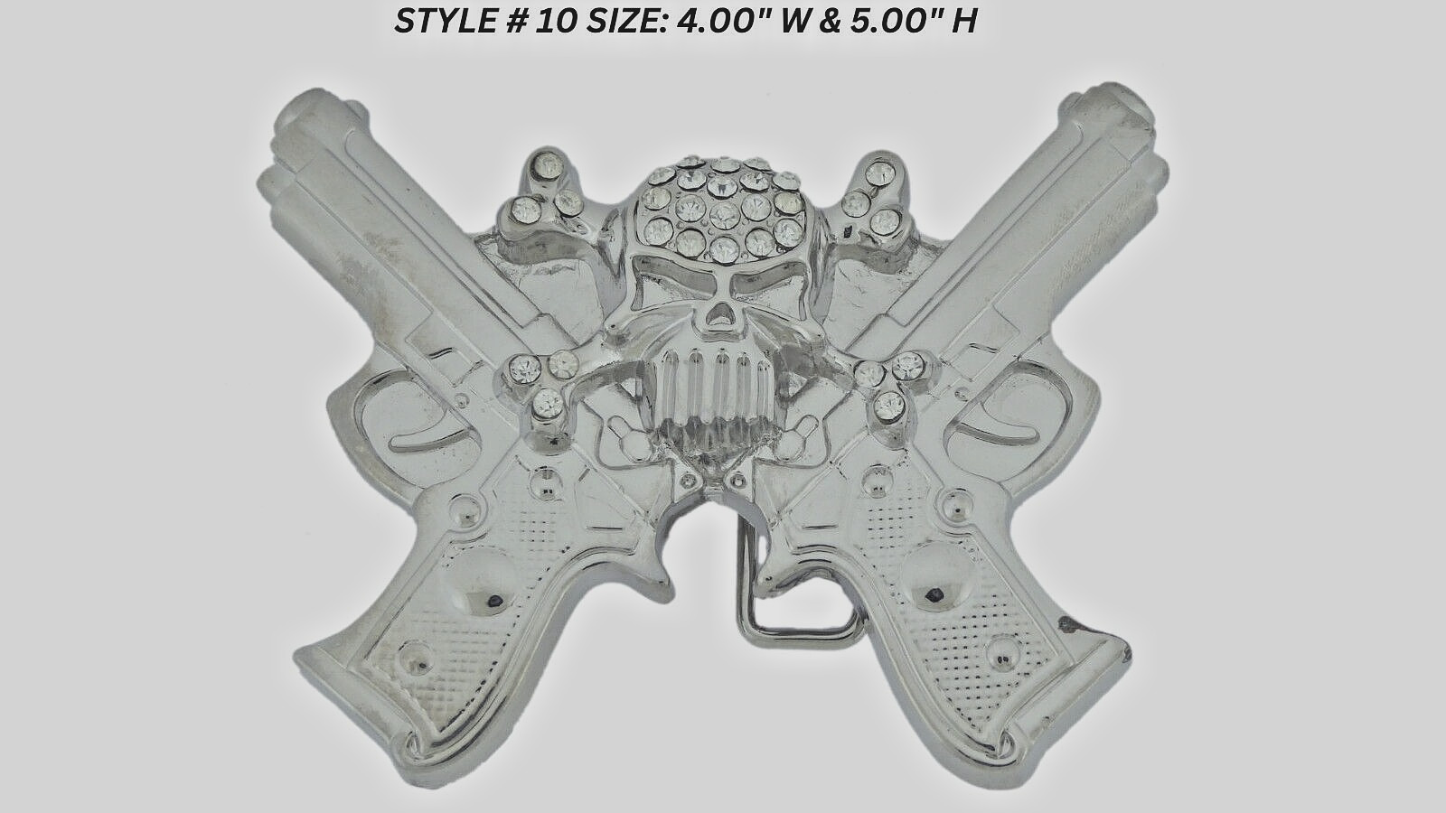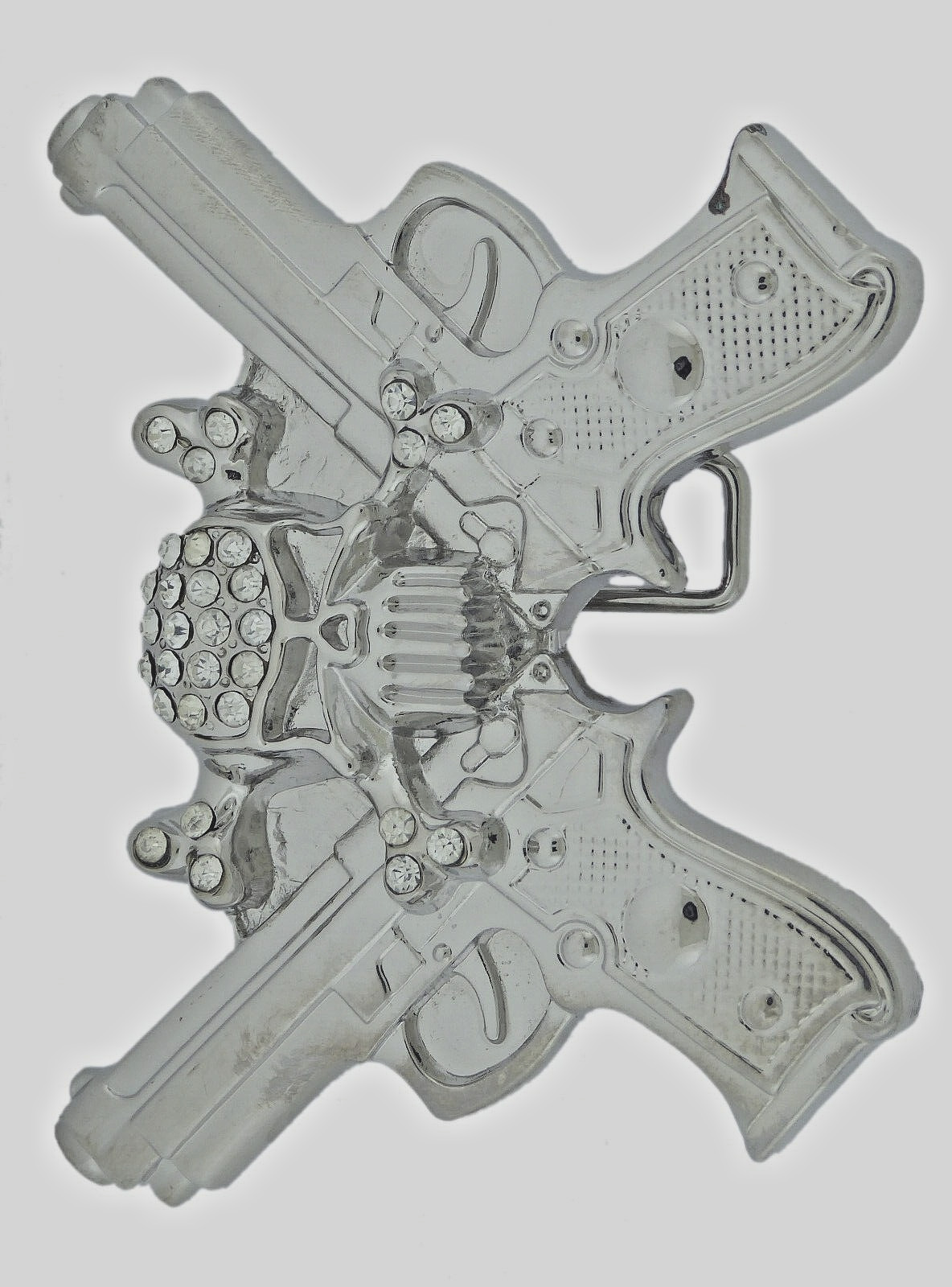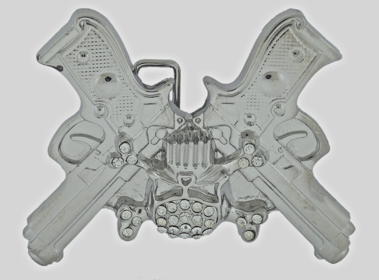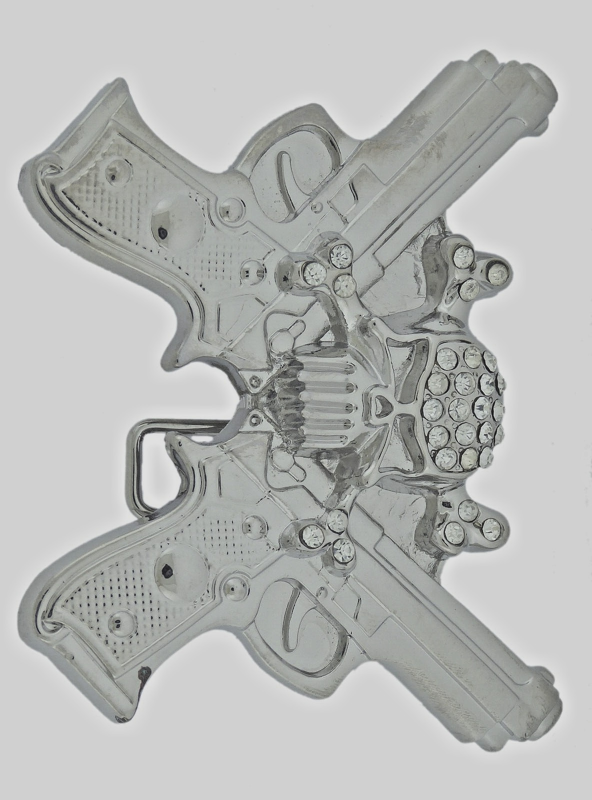Skull Belt Buckles Gun Silver Metal Emblem Vintage Pirate Men Women BlingTattoo