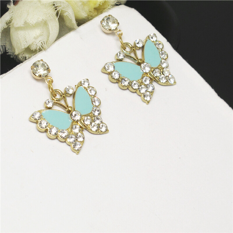 New Fashion Women Blue Enamel Cute Butterfly Crystal Stand Earrings Gift