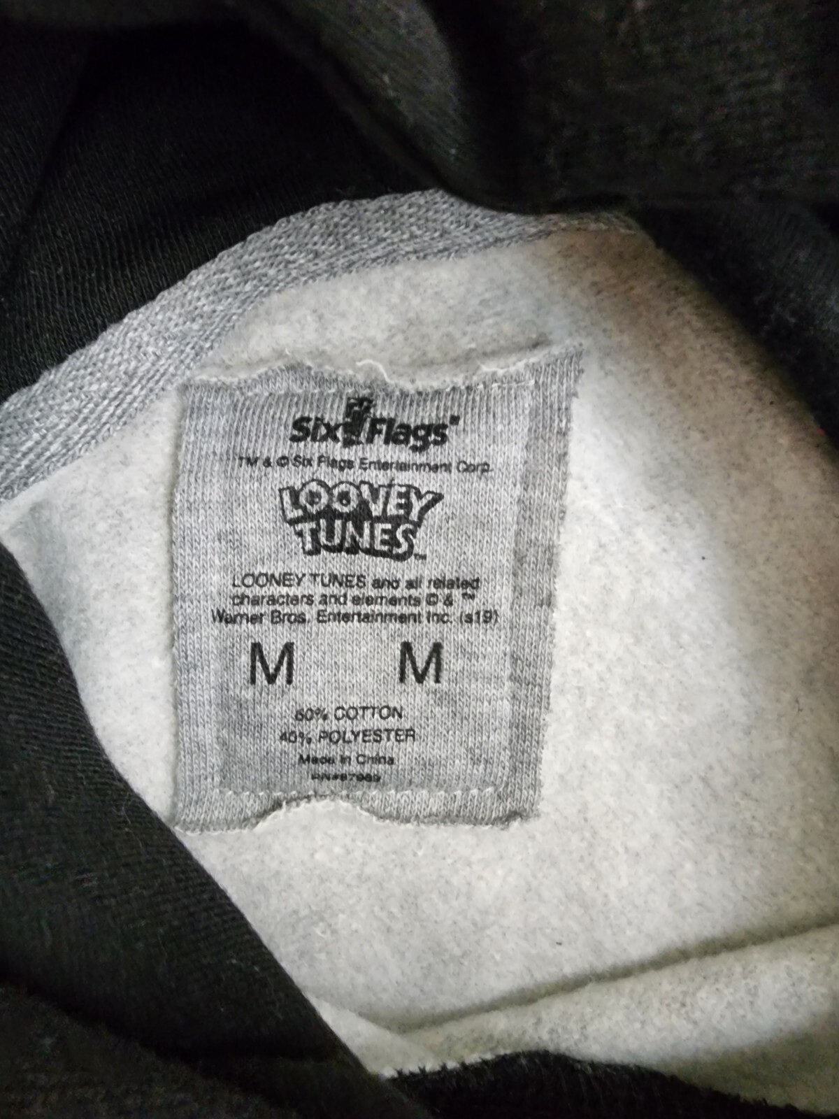 Looney Tunes Bugs Bunny Hoodie Grey Black Pullover Size M Six Flags