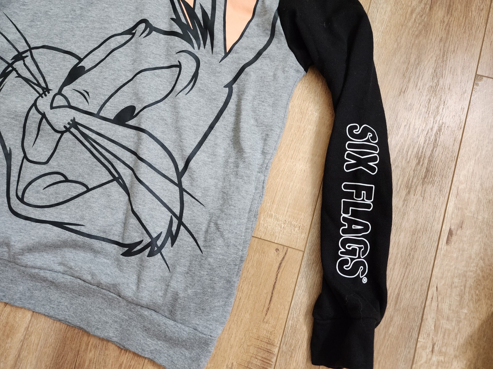 как выглядит Looney Tunes Bugs Bunny Hoodie Grey Black Pullover Size M Six Flags фото