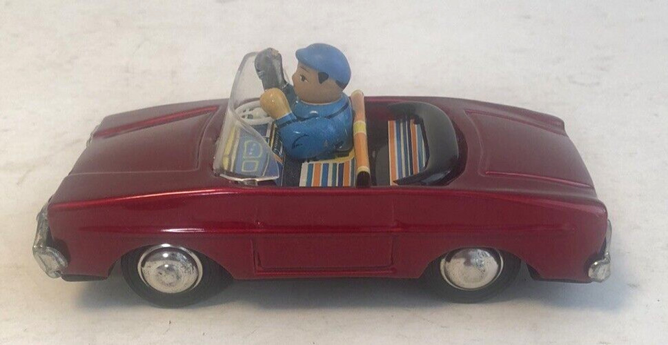 как выглядит NOS Friction Tin Toy Convertible Car Waving Driver Siren RHD JDM Vtg New MF-171 фото