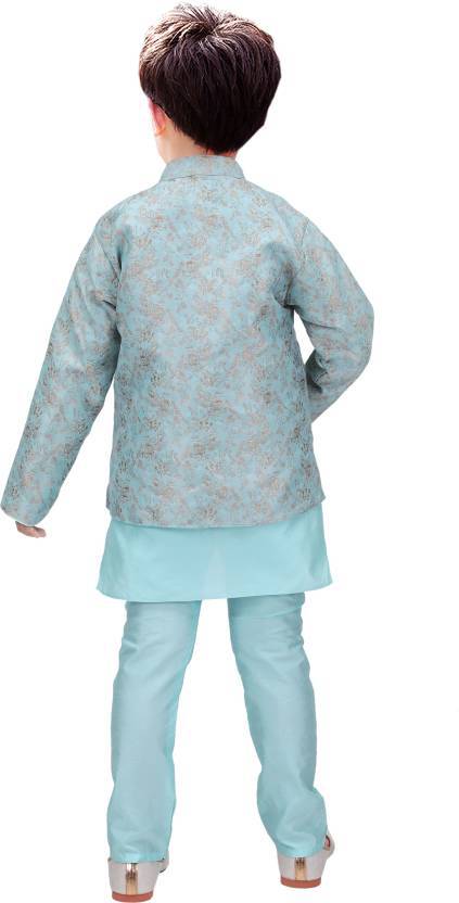 Boys Festive Party Kurta, Waistcoat and Pyjama Set Light Blue Pack of 1