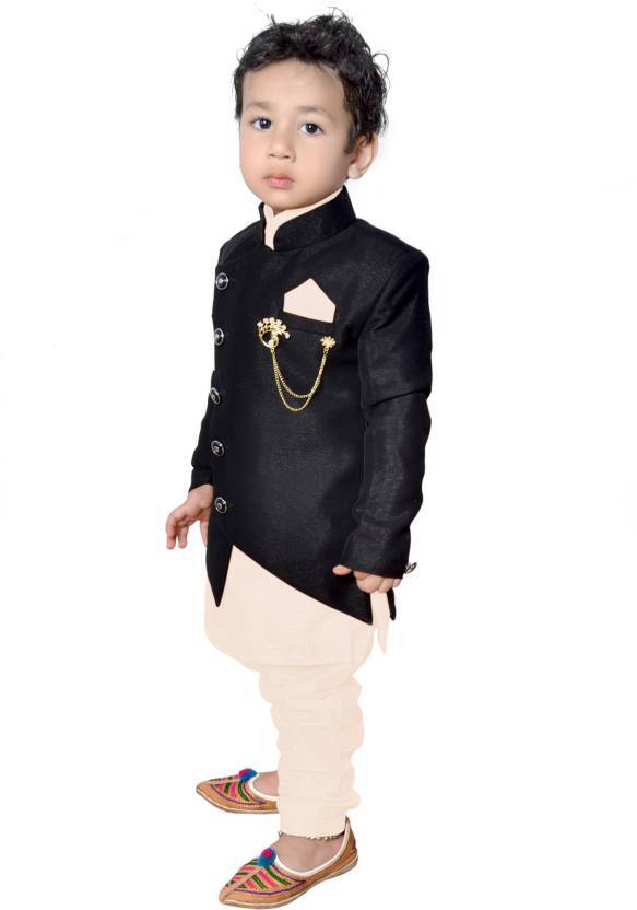 Boys Festive Party Kurta, Waistcoat and Pyjama Set Multicolor Pack of 1