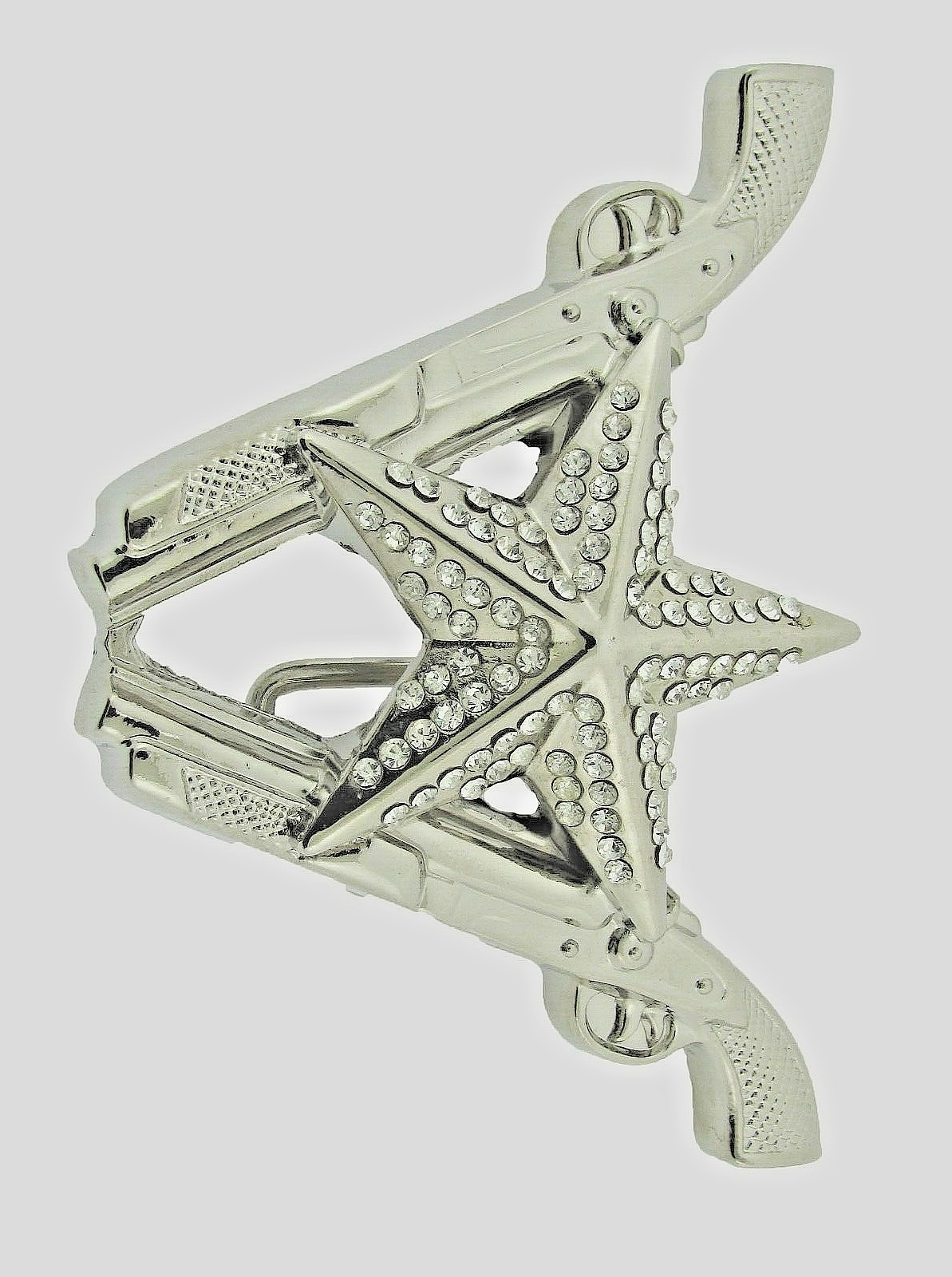 Star Belt Buckle Western GUNS Cowgirl Women Men Rodeo Silver Metal Rhinestones