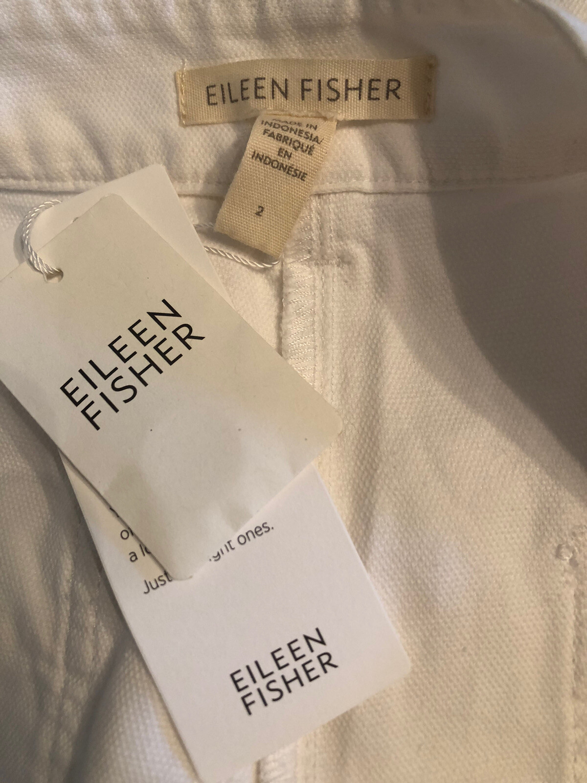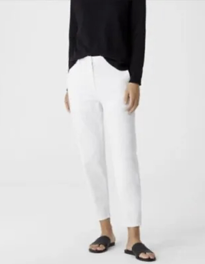 как выглядит Eileen Fisher White Ankle Pants Womens Organic Cotton Hemp Stretch 178 Sz-2 NWT фото