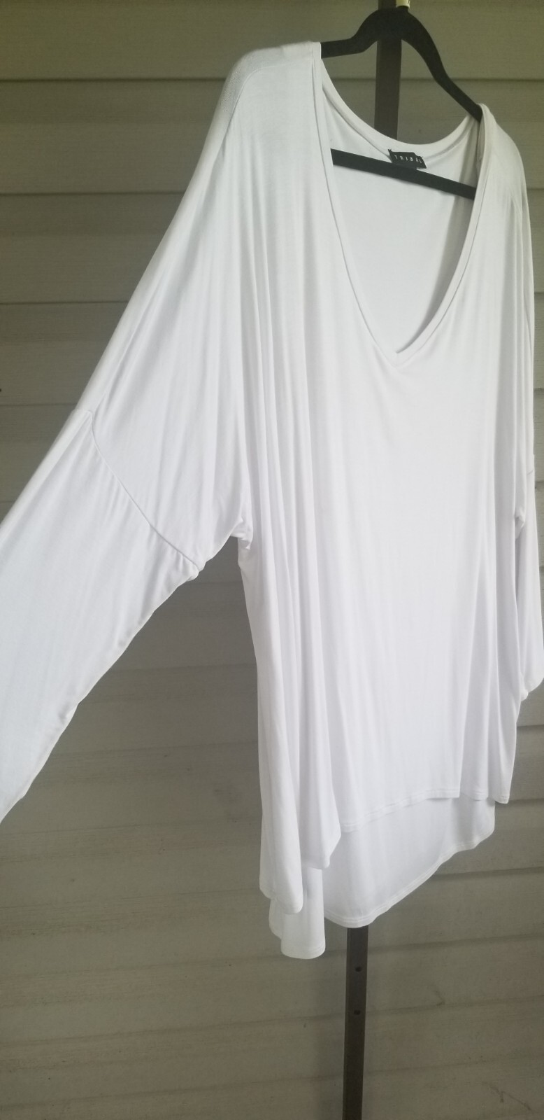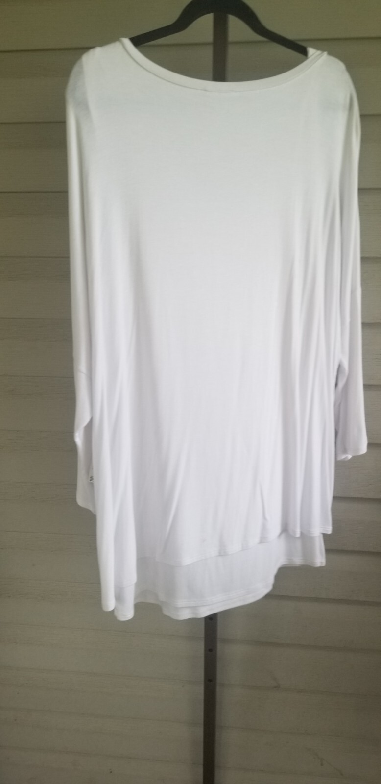 как выглядит Tribal Blouse Tunic 3/4 Sleeve Top Plus Size XXL White Stretch LAYERED NWT фото