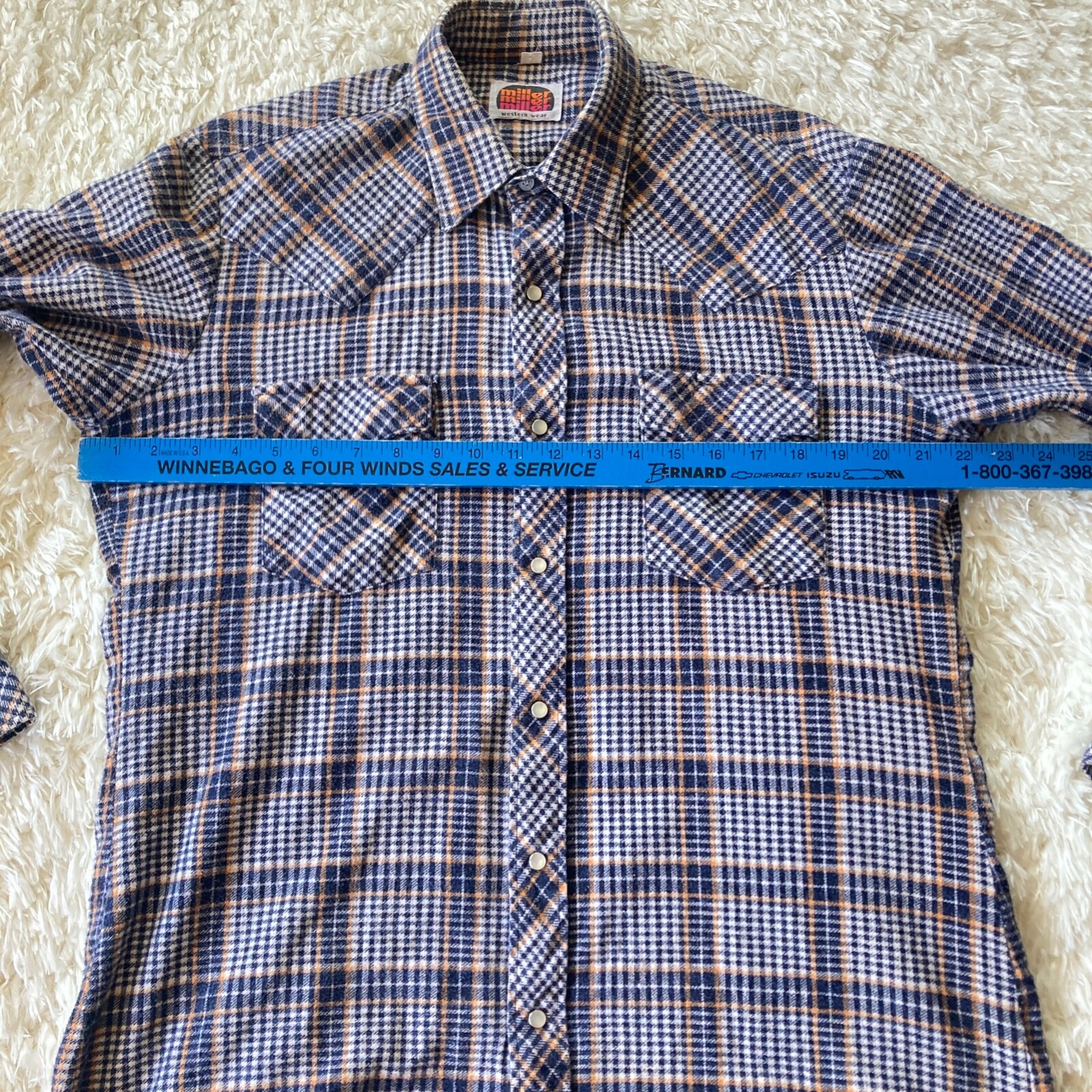 как выглядит Vintage Miller Western Wear Pearl Snap Shirt Mens 16 34 Long Sleeve Plaid фото