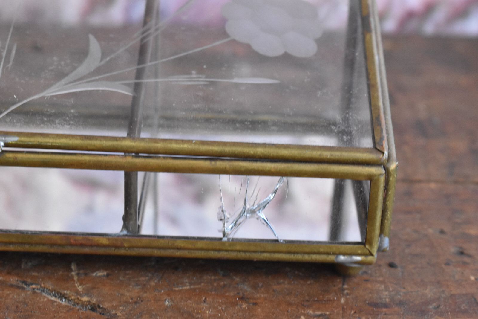 • Vintage Brass Glass Display Trinket Jewelry Box with Mirrored Bottom