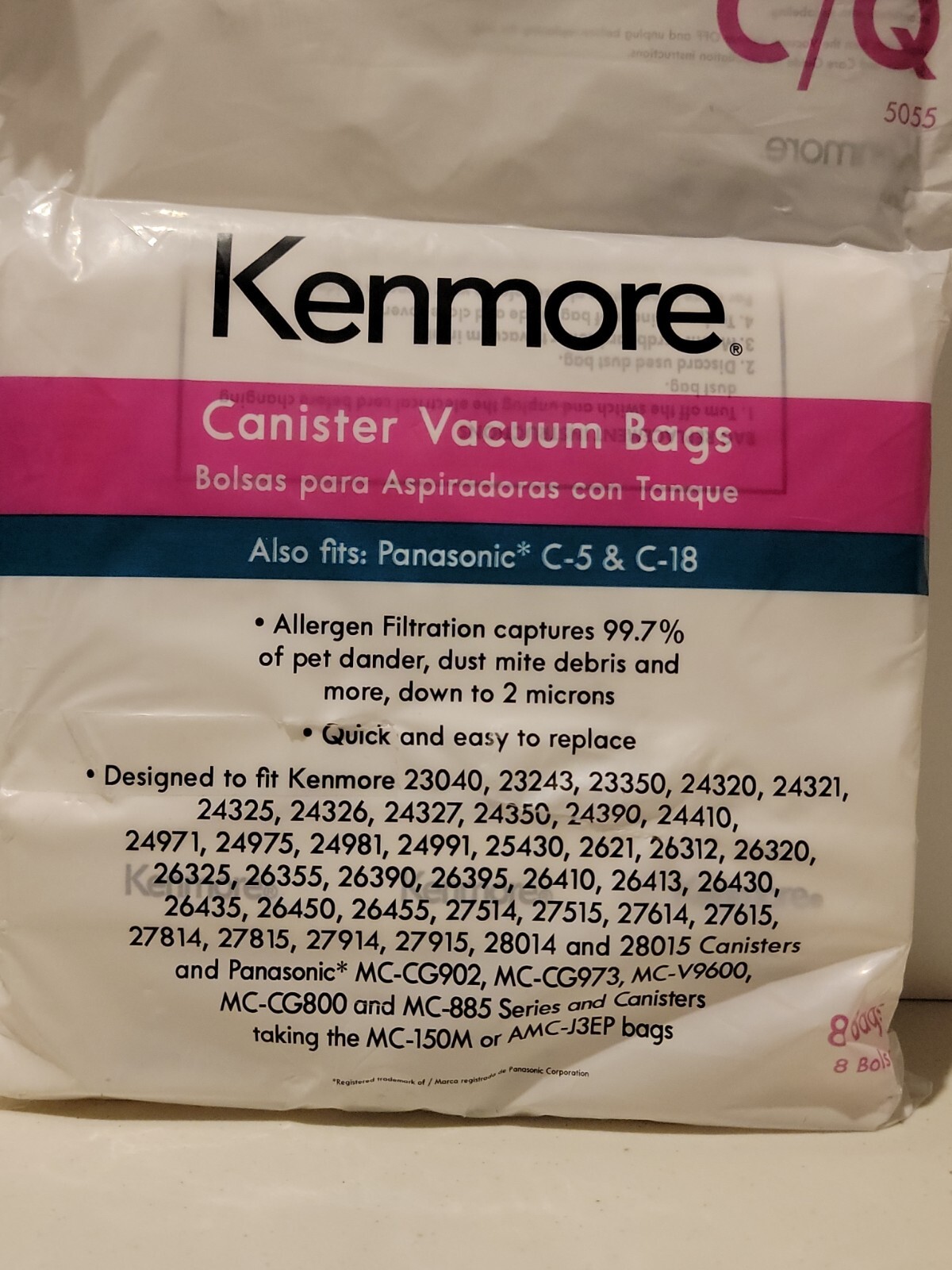 Kenmore 50104 8 Pack Style C/Q Canister Vacuum Bags