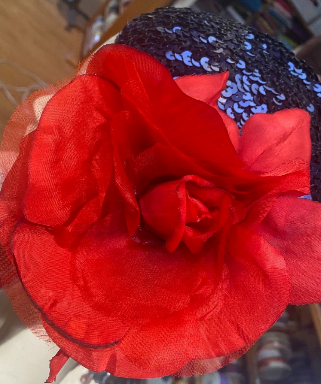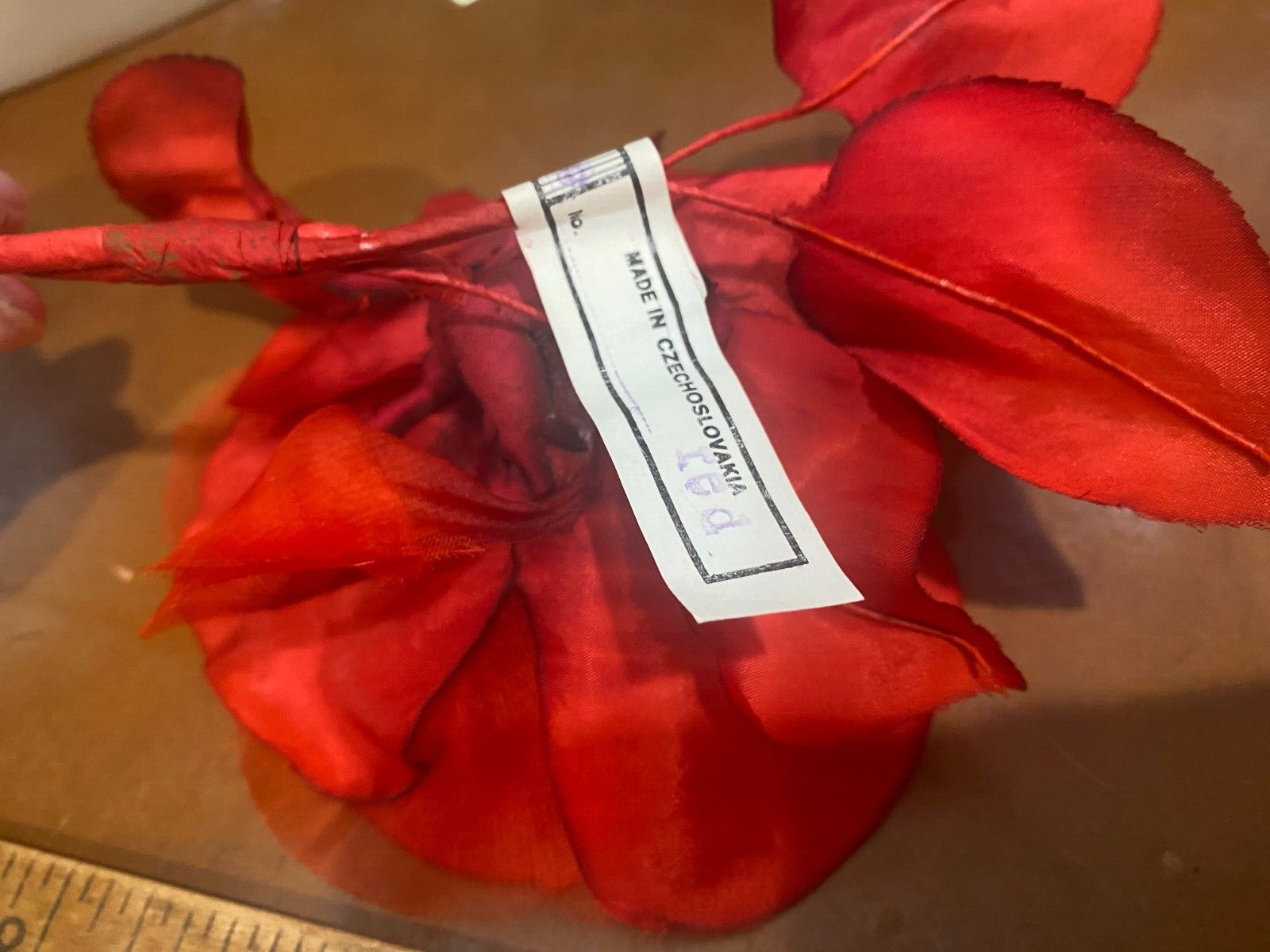 как выглядит vintage silk flower organza 6" true red rose 1pc made in Czechoslovakia фото