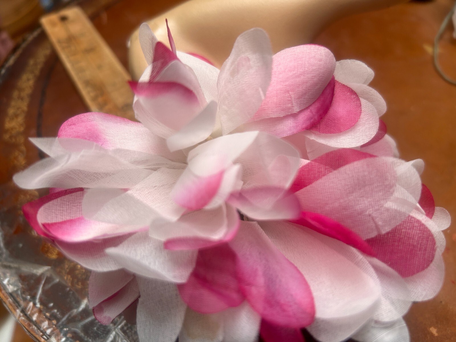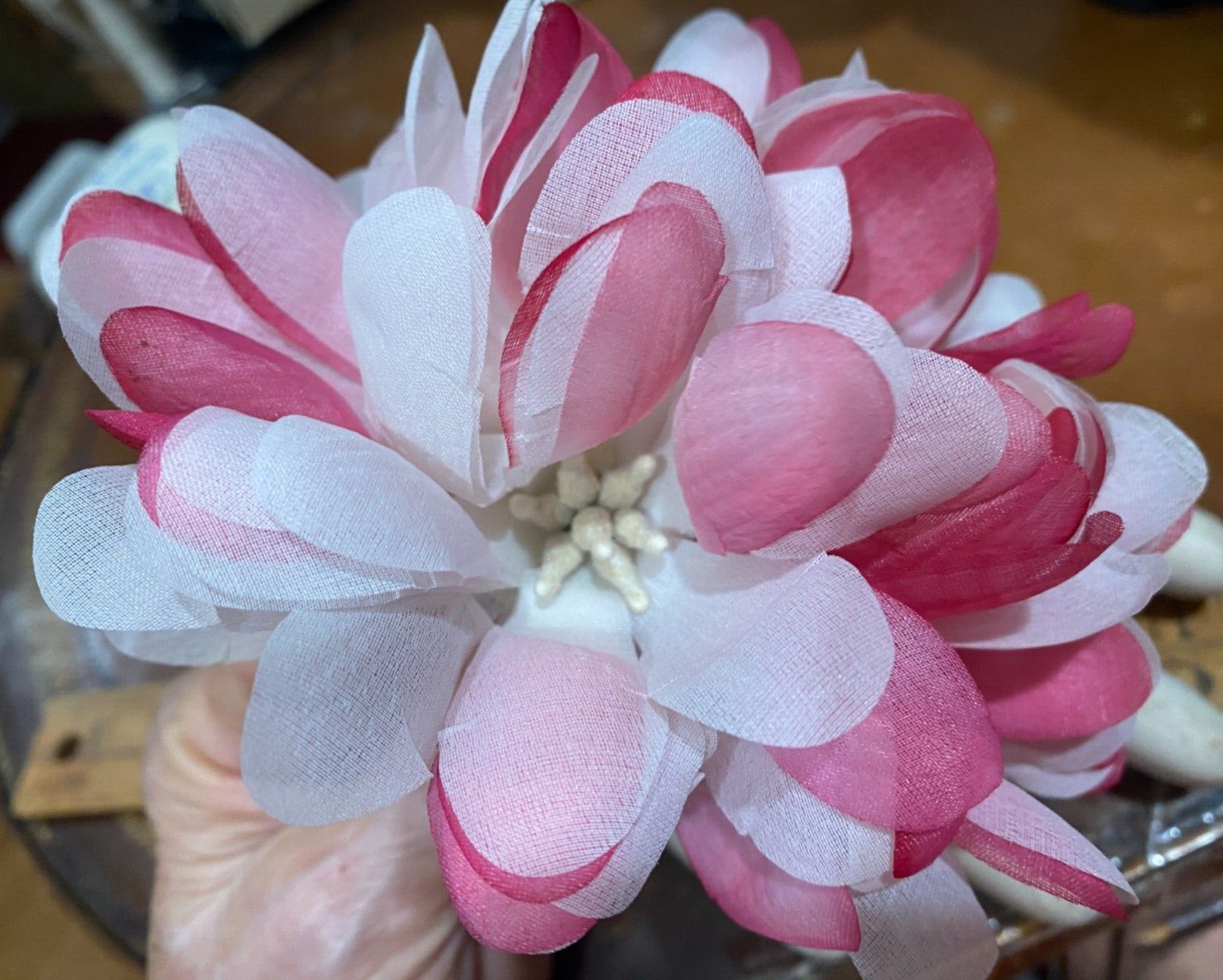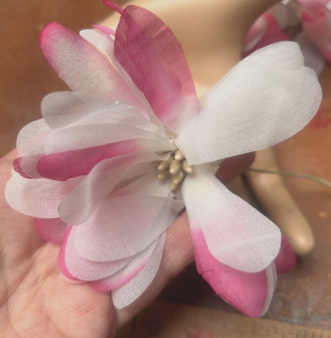 vintage millinery silk petals 4 pink white 3 flowers made in Japan