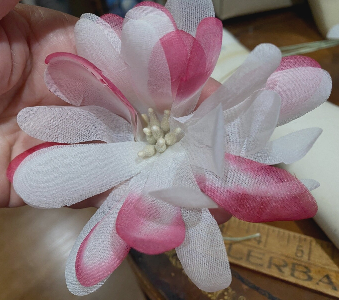 как выглядит vintage millinery silk petals 4" pink white 3 flowers made in Japan фото