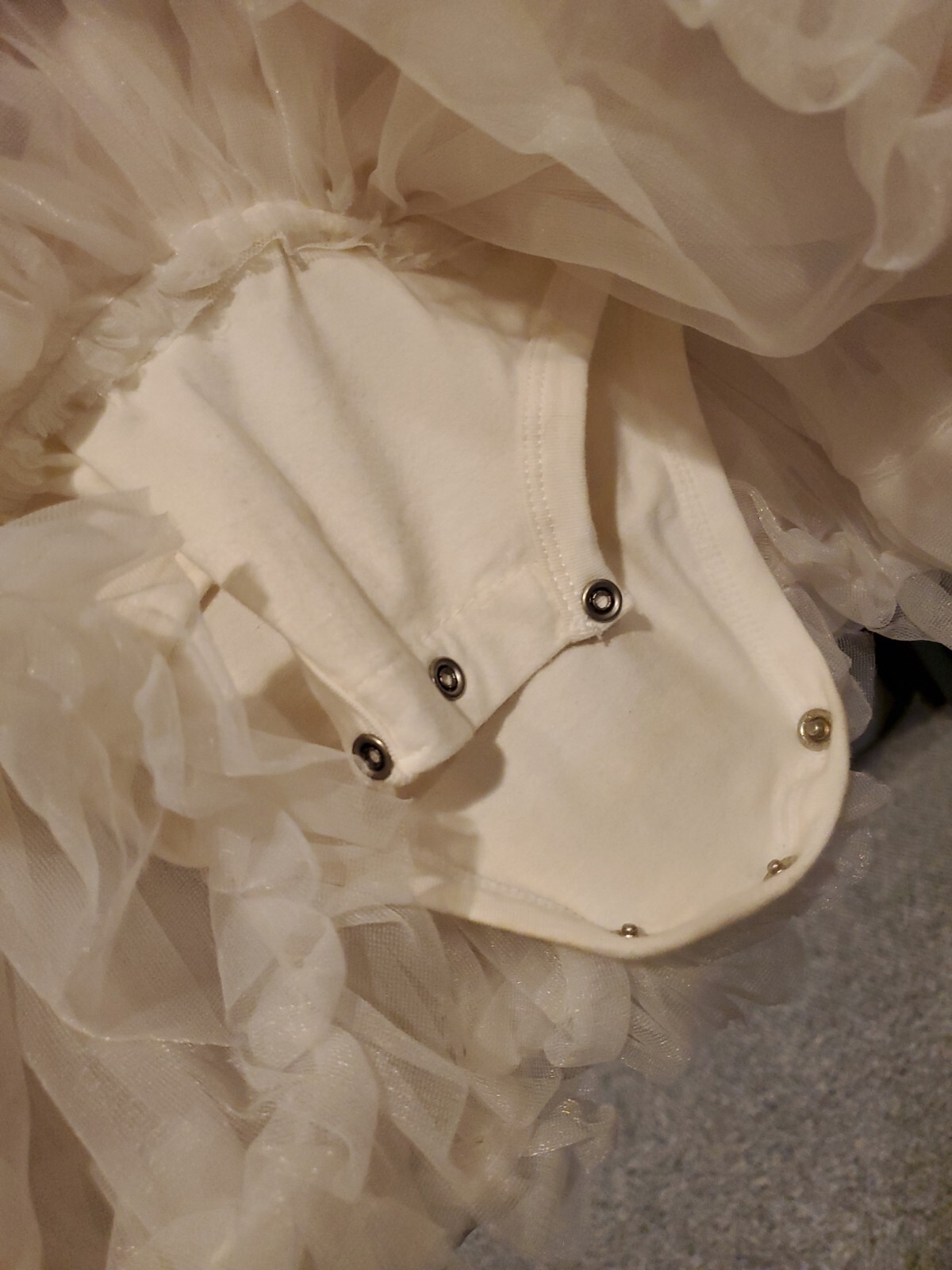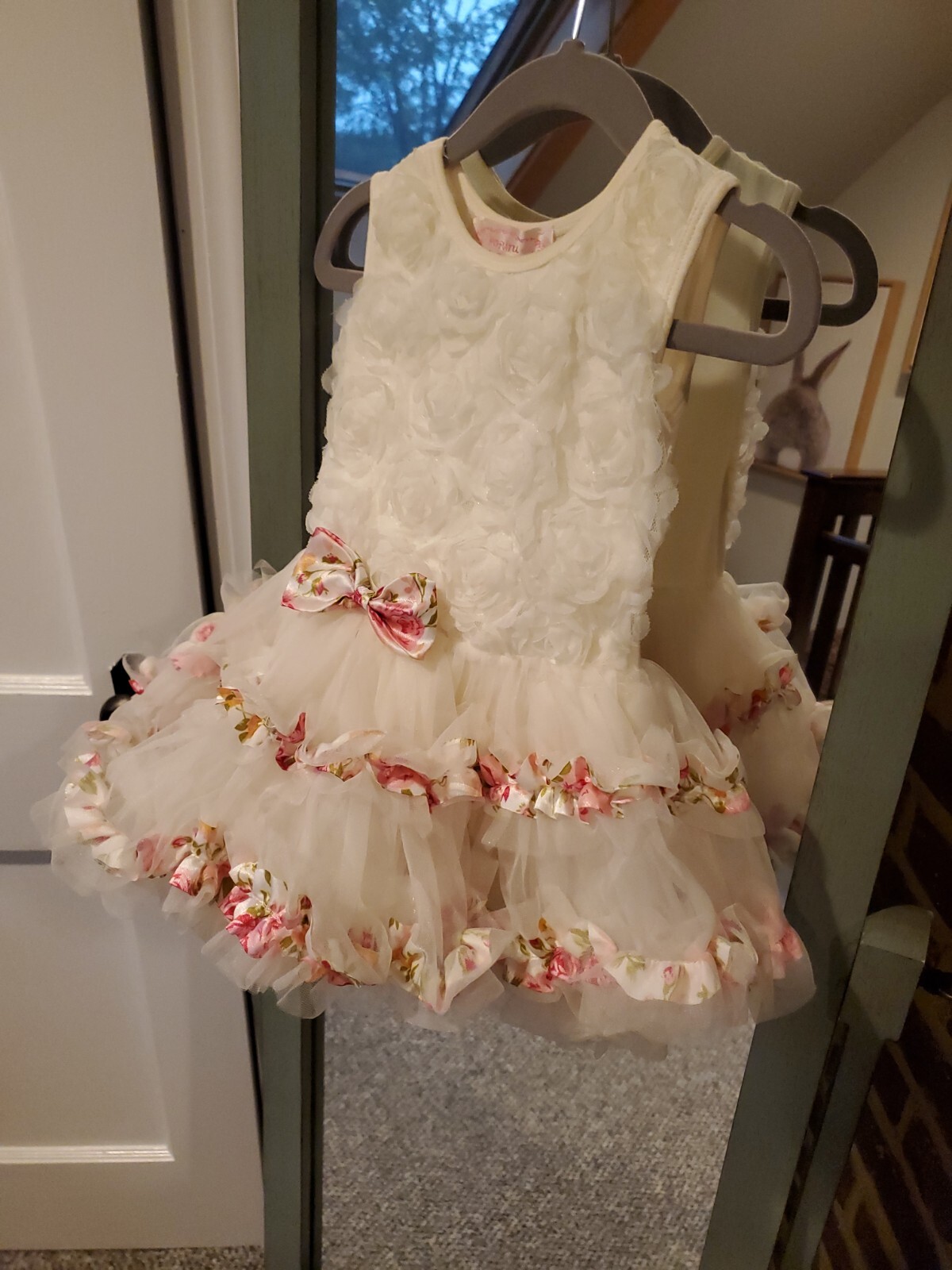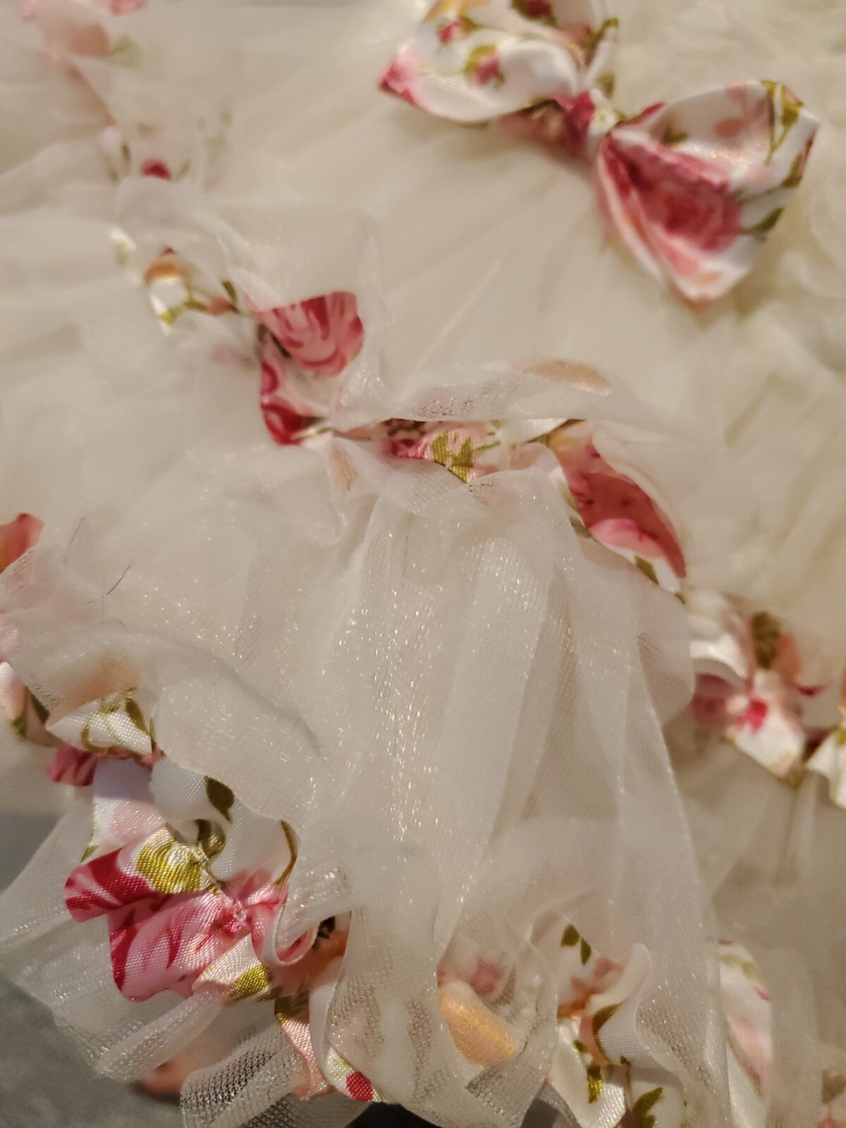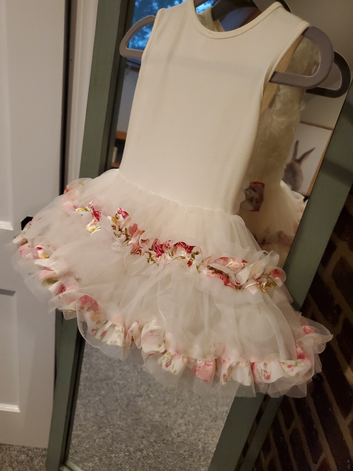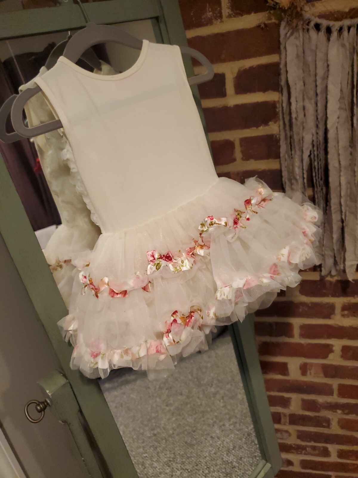 Popatu Tutu Dress - Ivory w/ Floral Trim Bow 12m