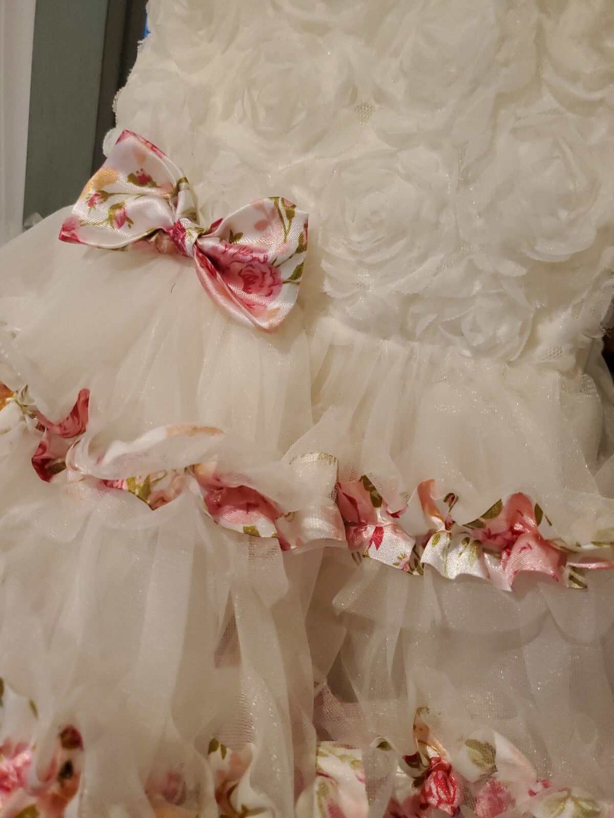 как выглядит Popatu Tutu Dress - Ivory w/ Floral Trim Bow 12m фото