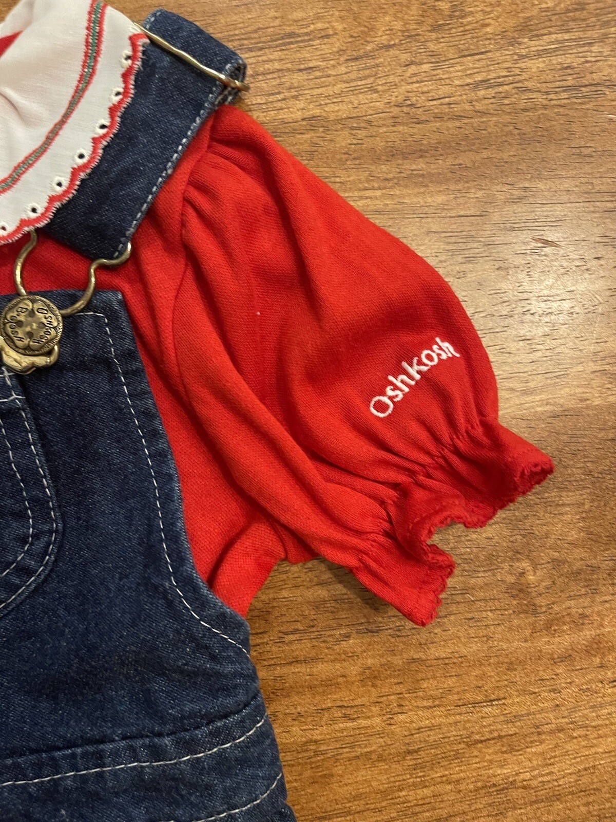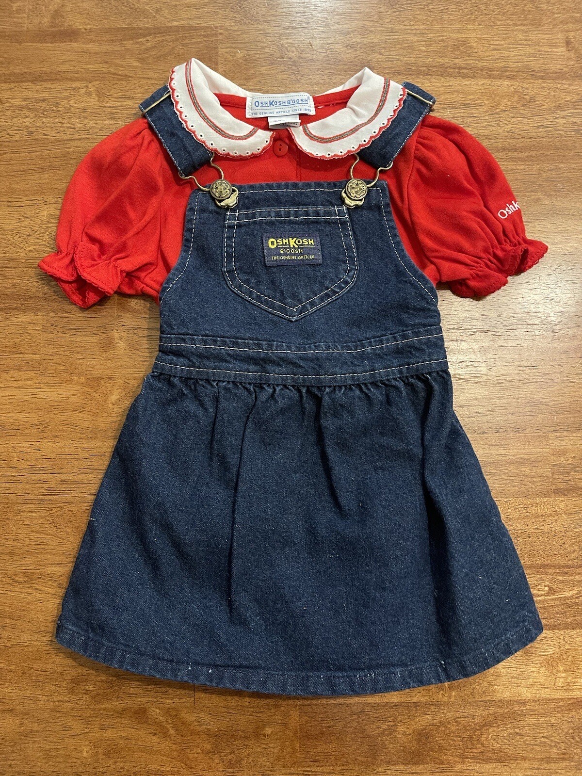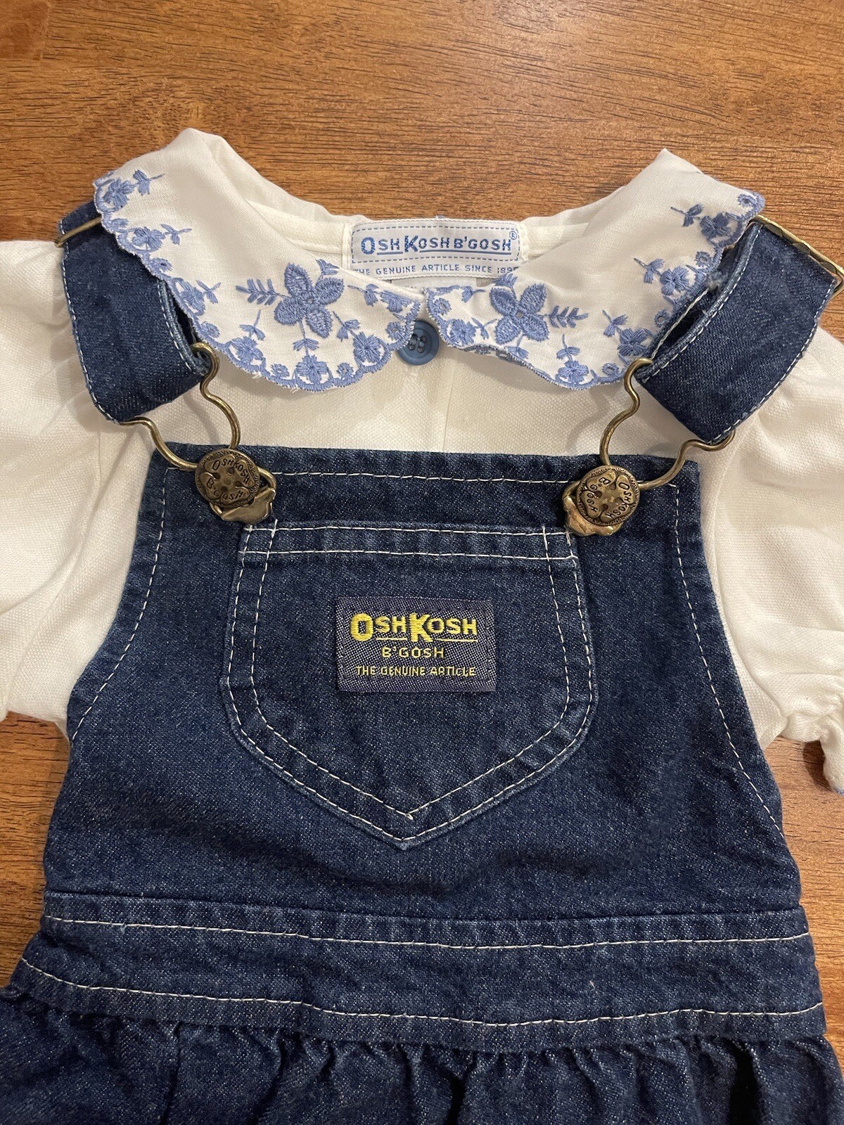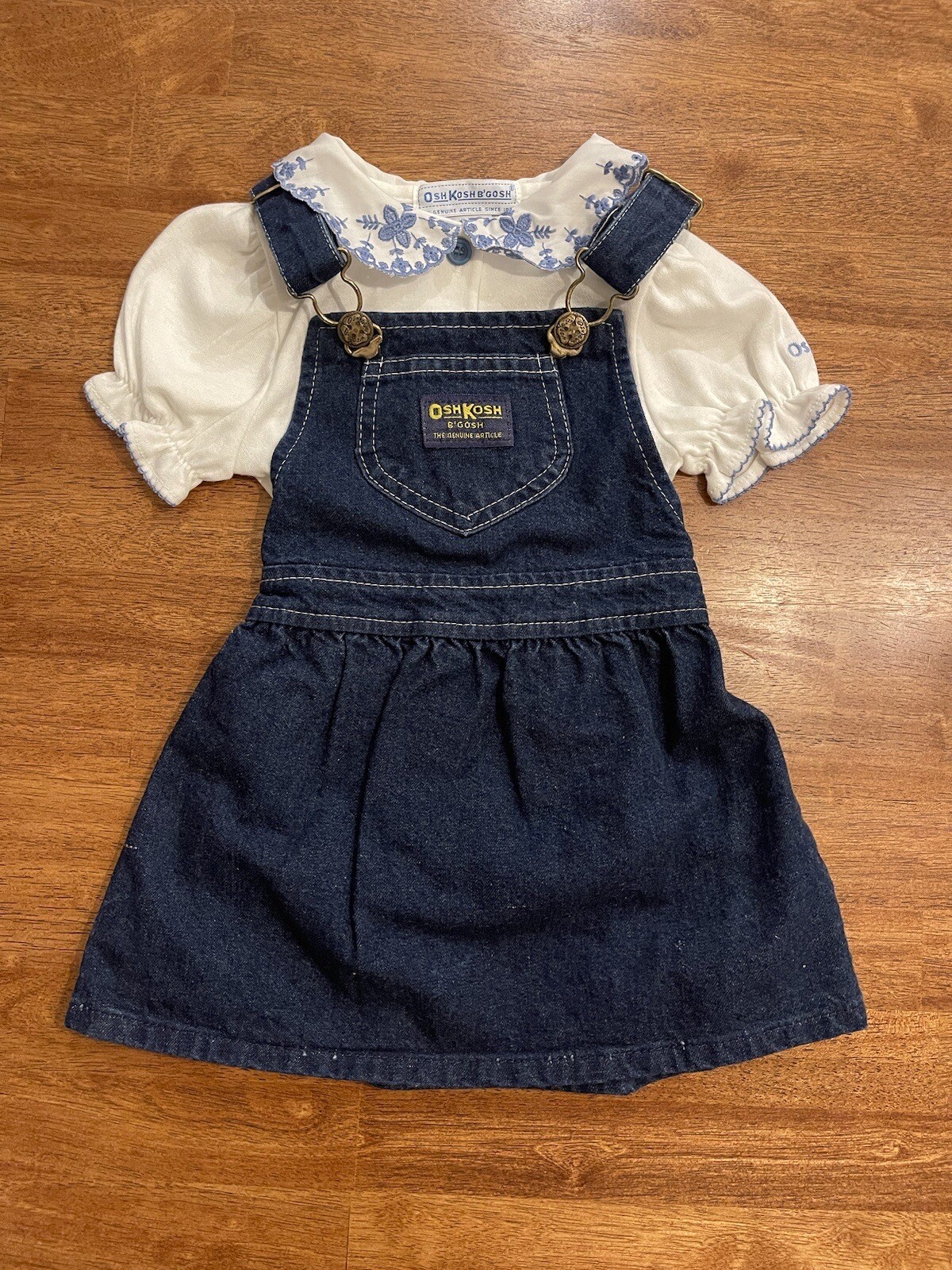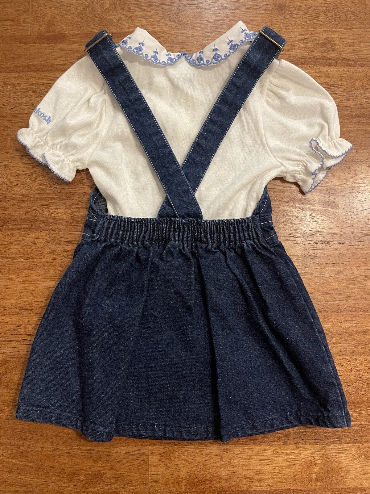 Vtg Oshkosh B GOSH Denim Overall Skirt Girls Size 3T Blue Jean Jumper Tops Set