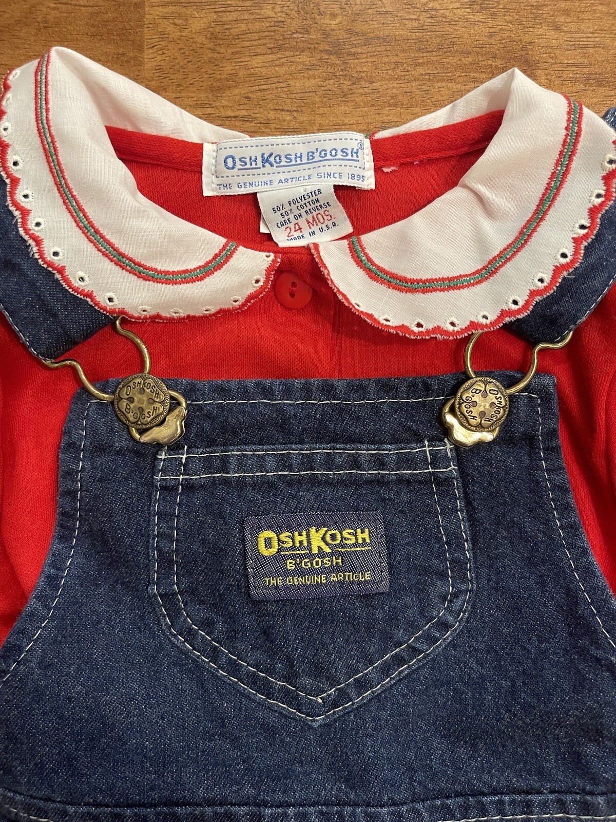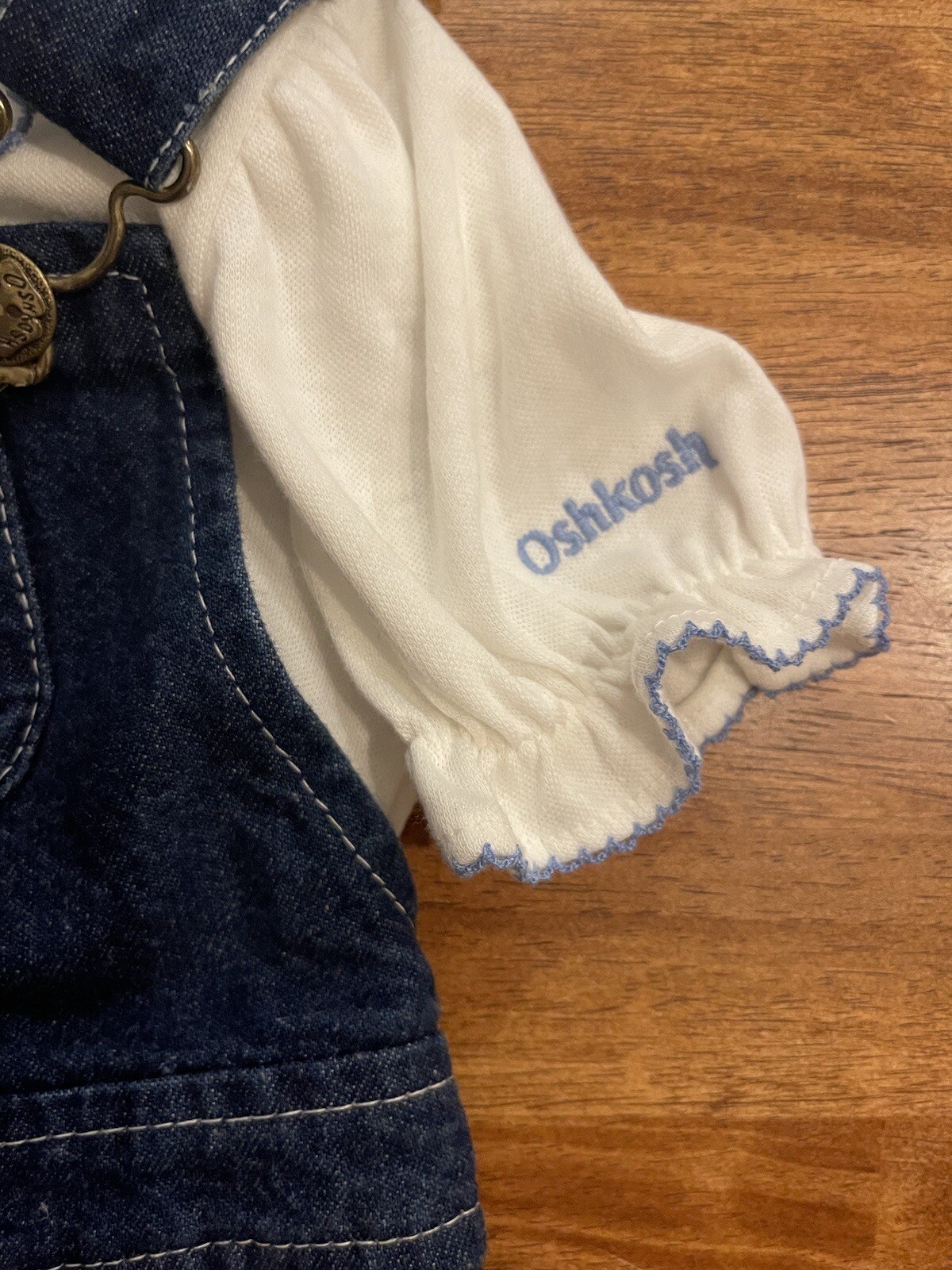 как выглядит Vtg Oshkosh B GOSH Denim Overall Skirt Girls Size 3T Blue Jean Jumper Tops Set фото