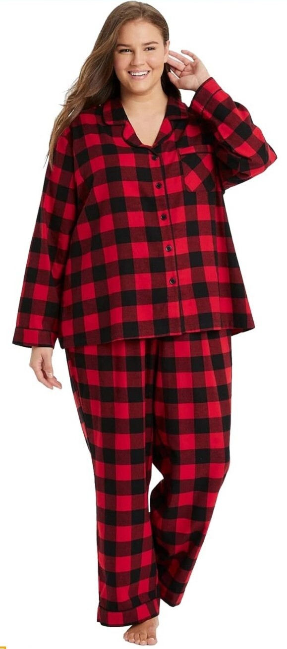 Womens Holiday Buffalo Check Plaid 1X Flannel Pajama Set Wondershop Red NEW
