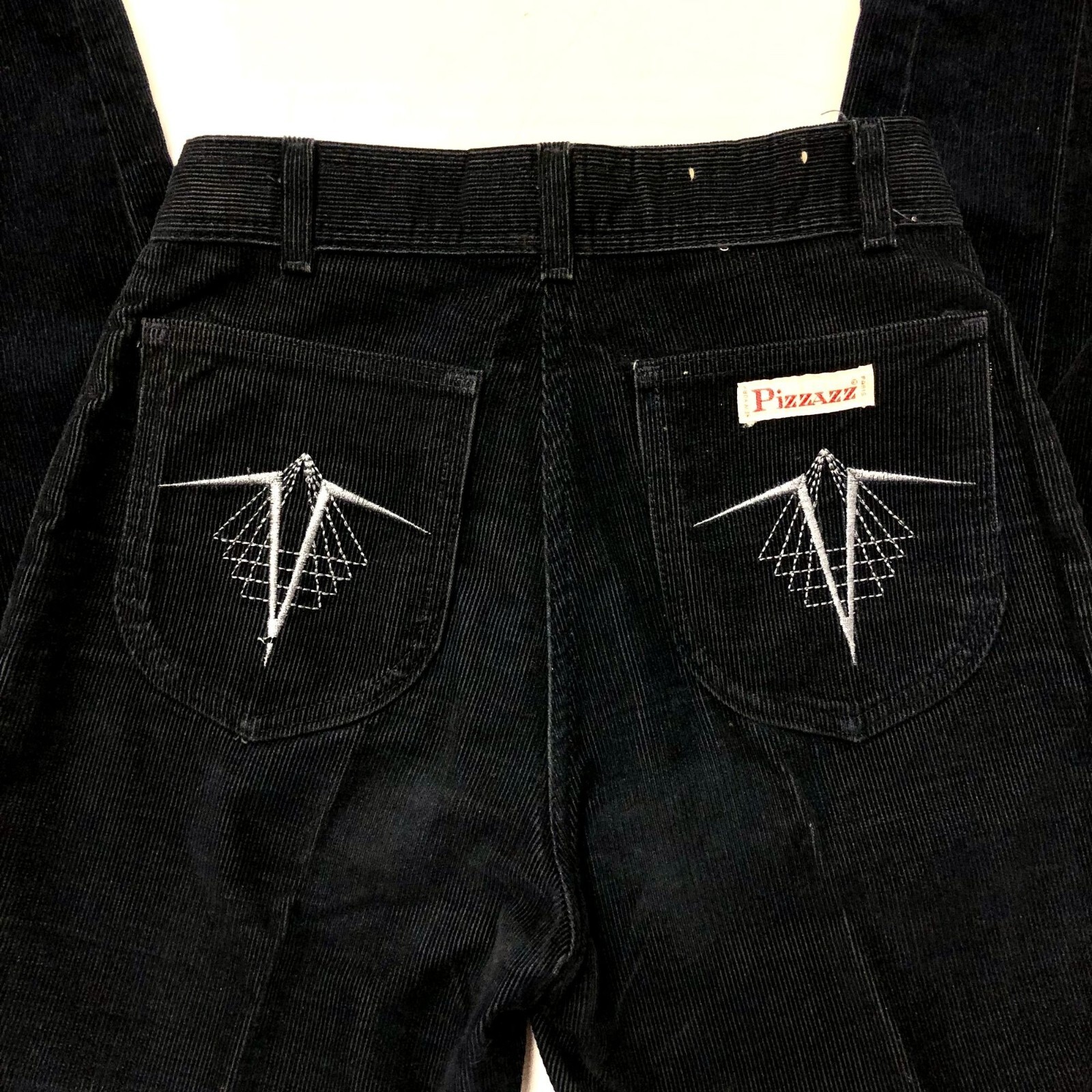 как выглядит Vtg 70s Pizzazz Women Blue CORDUROY MoD Hippie BELL BOTTOMS Pants DISCO Jeans 8 фото