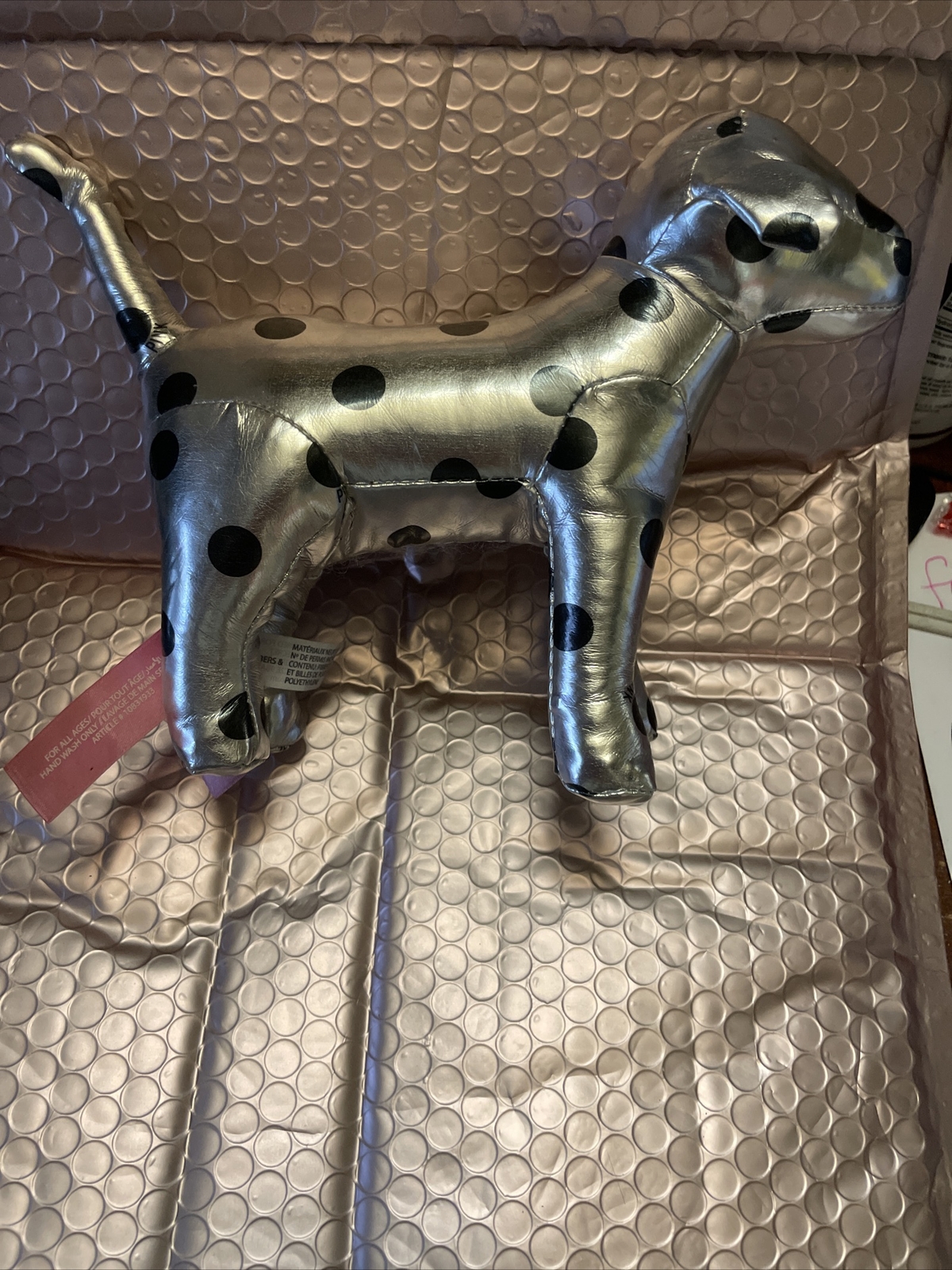Victoria s Secret PINK Dog Plush Silver Metallic W/ Black Polka Dots