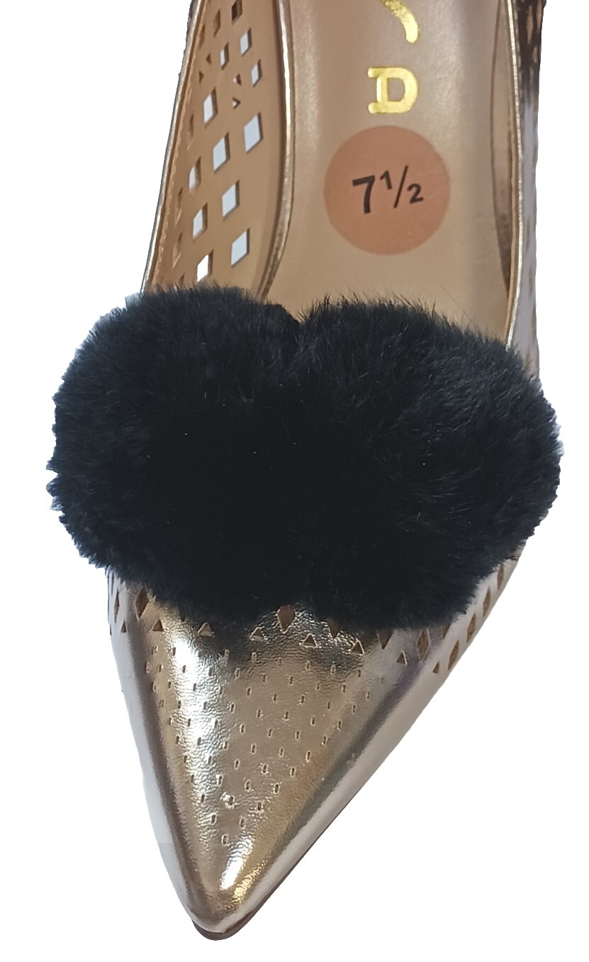 Black Color Pom Pom Clip for Shoes 2pcs , Shoe Accessories, Faux Fur