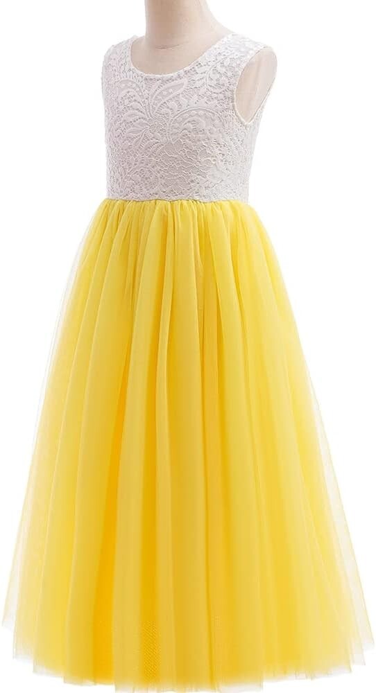 как выглядит JupElle Yellow Party Dress, 6T - Little Girl Ruffle Lace Wedding Flower Girl фото