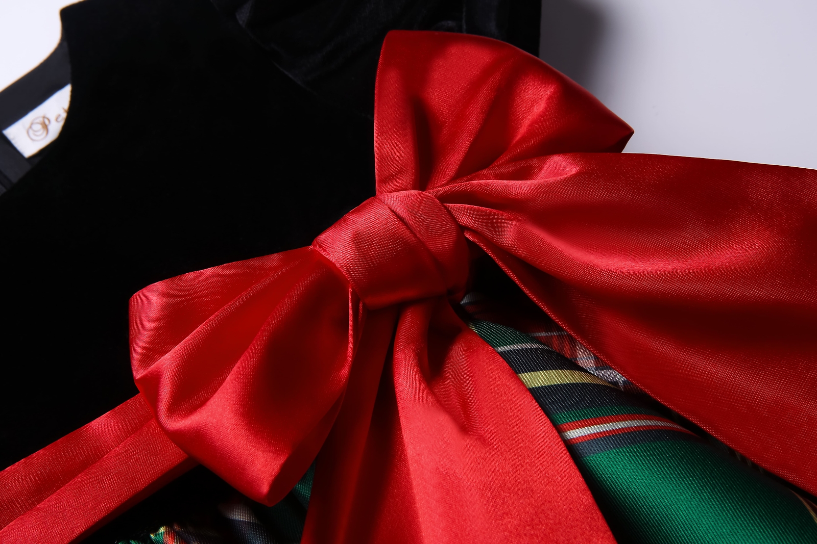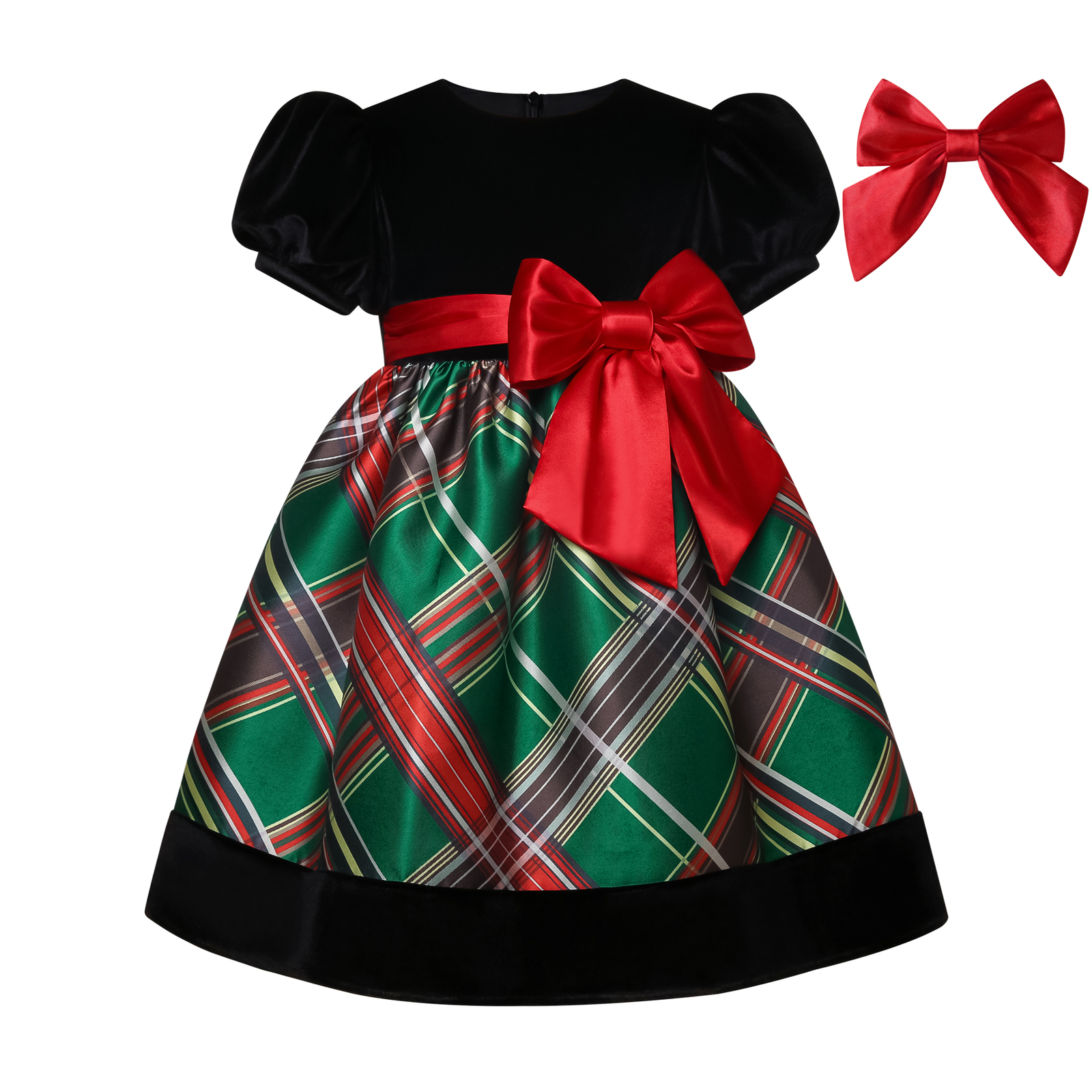 Toddler Girl Black Velvet Christmas Holiday Dress Size 1-8 Years Green Red Bow