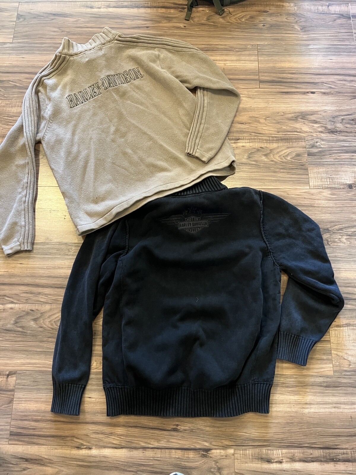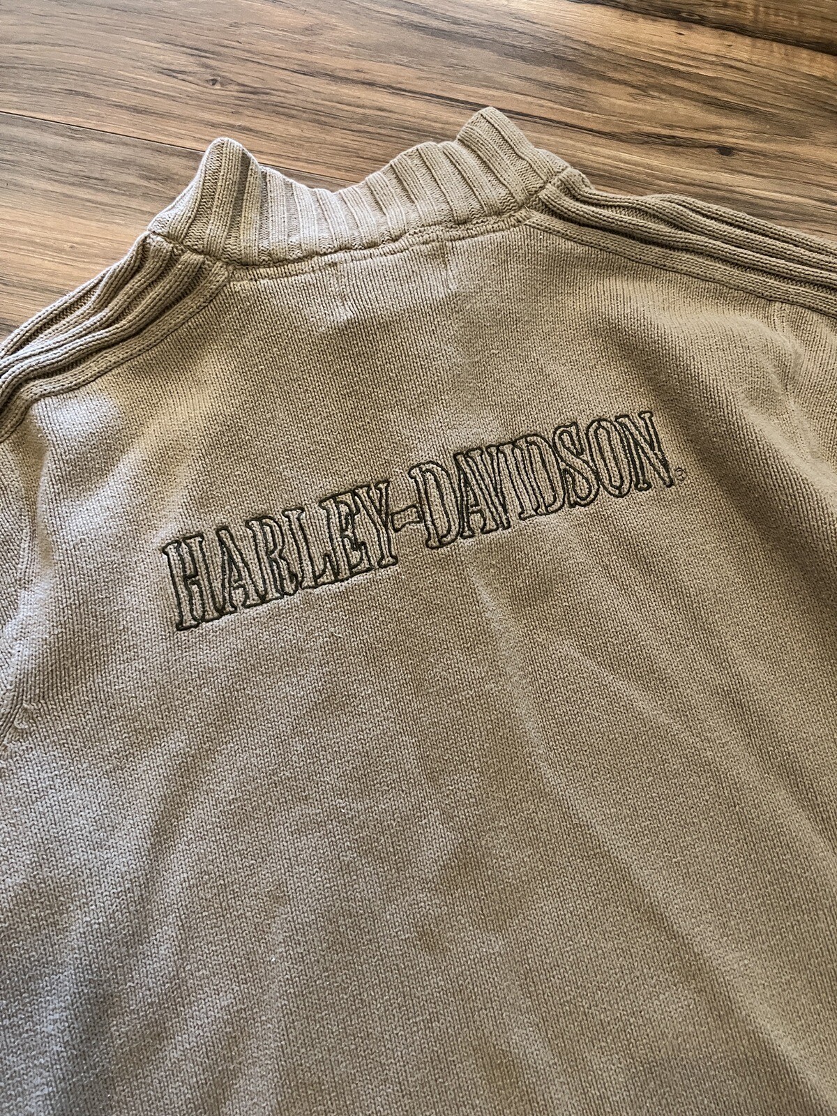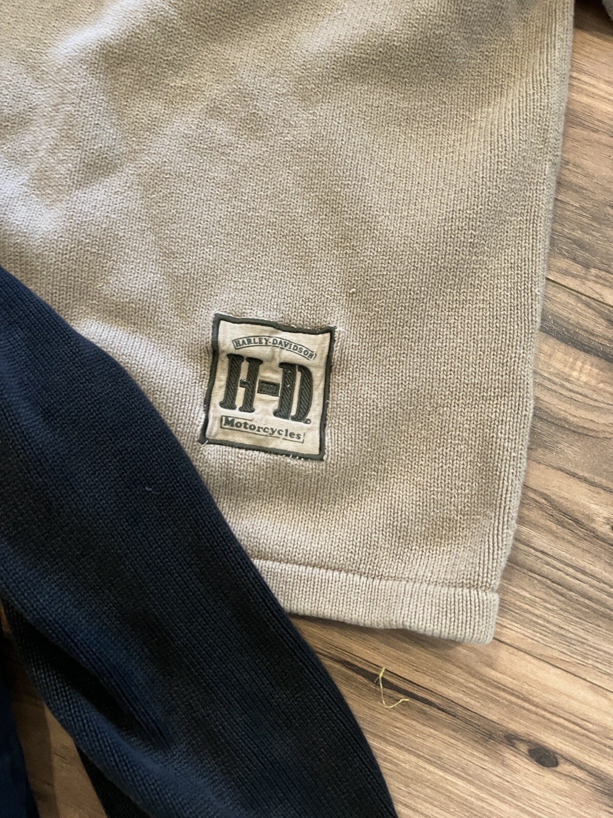 как выглядит 2 Harley-Davidson Mens Lightning Crest 1/4 Zip Pullover Sweatshirt Black Tan фото