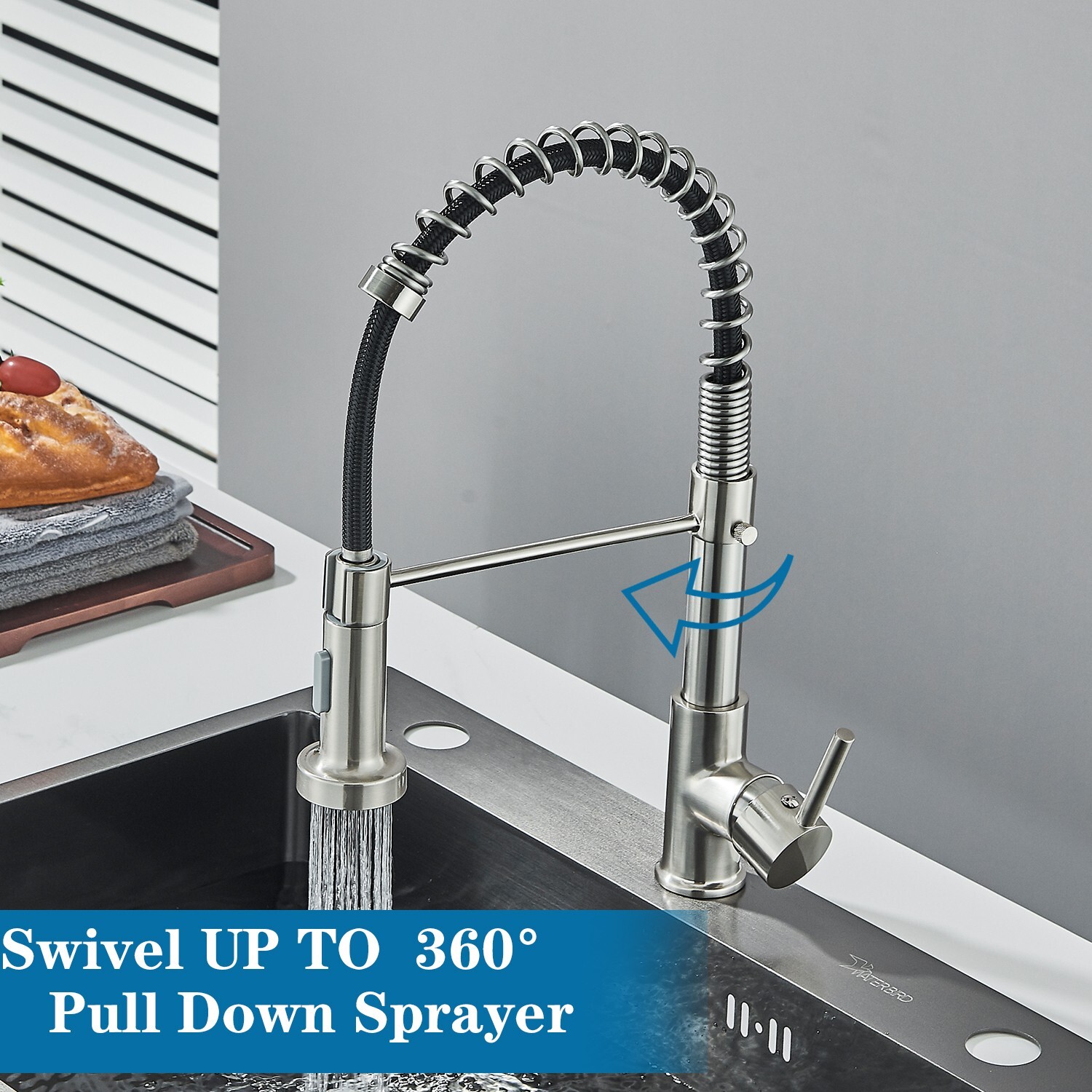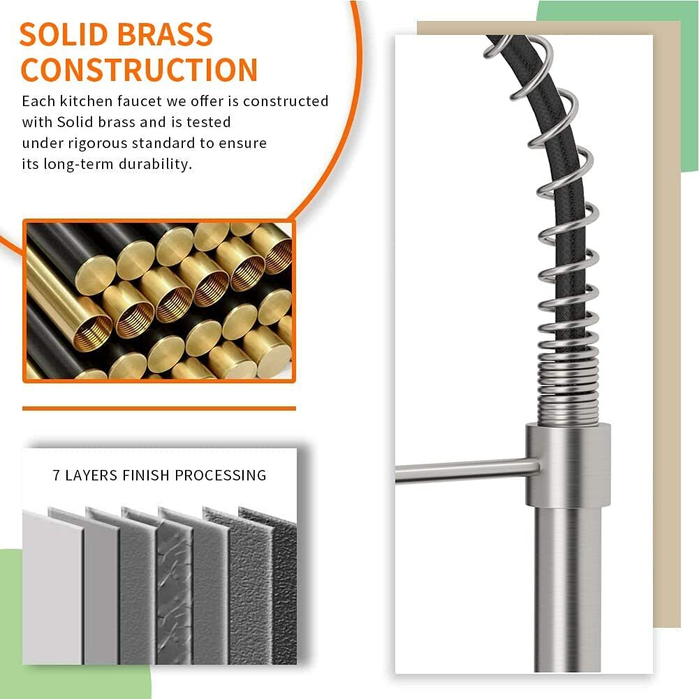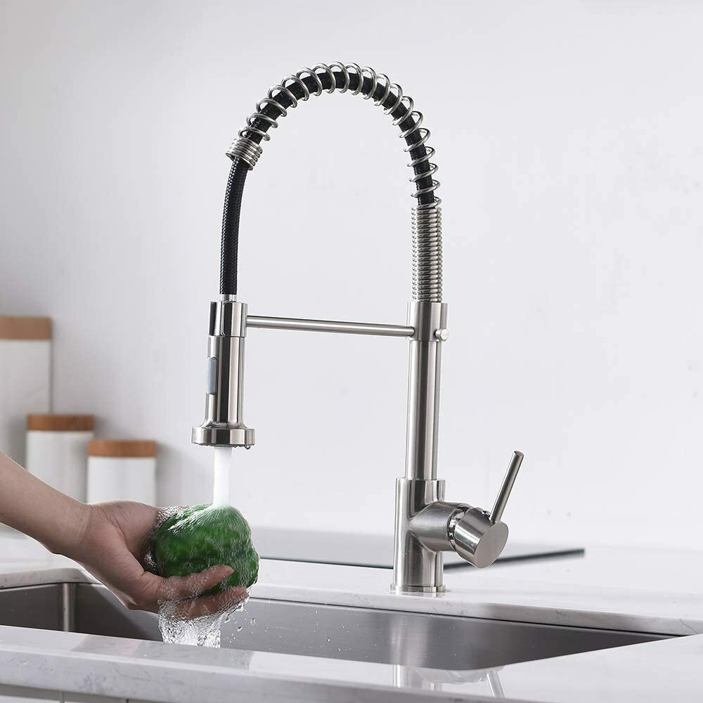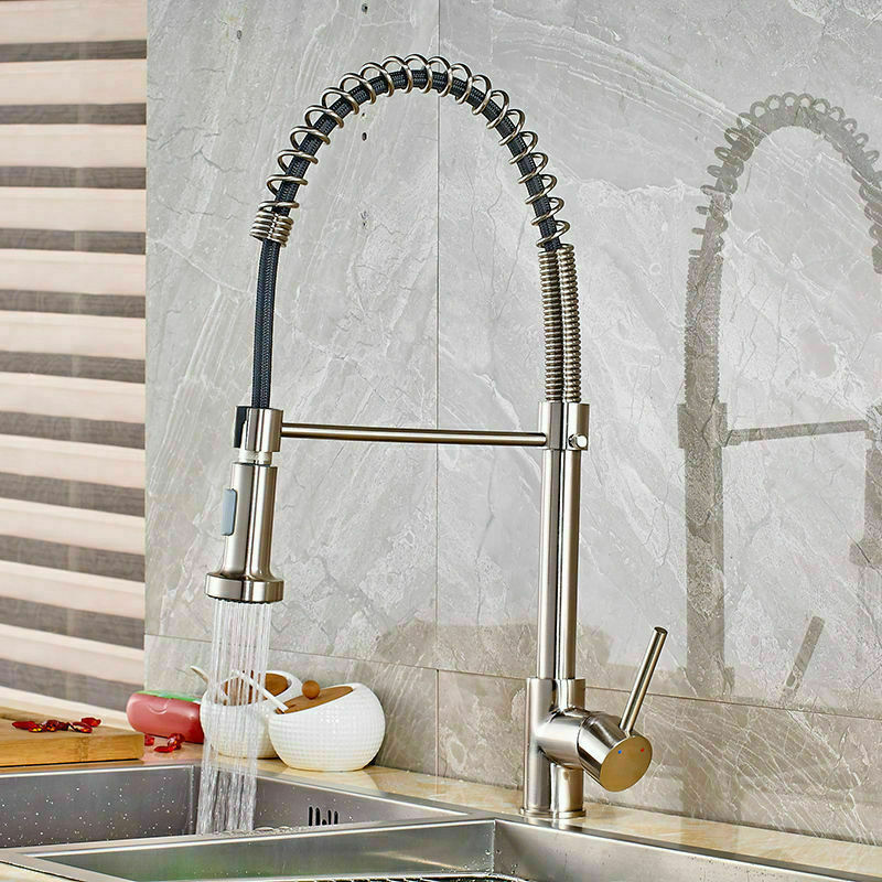 Brushed Nickel Kitchen Sink Faucet Pull Down Sprayer Swivel Spout Deck Mounted