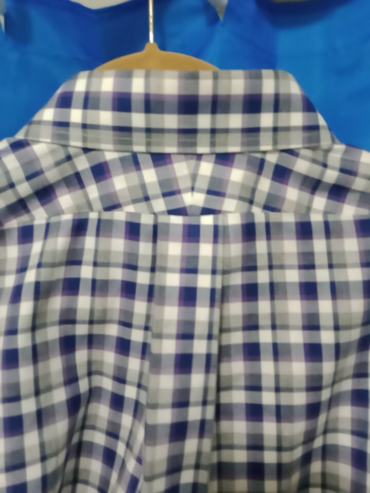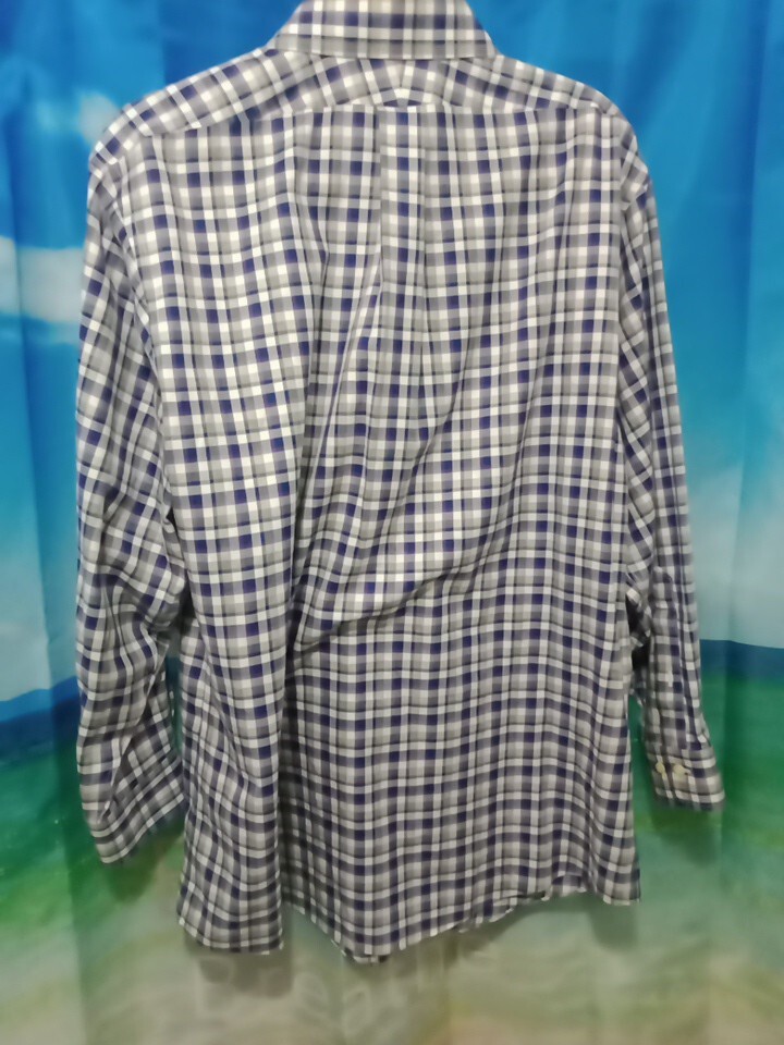 как выглядит BROOKS BROTHERS NON IRON BUTTON FRONT SHIRT Mens 17 Blue/Purple White Plaid B45 фото