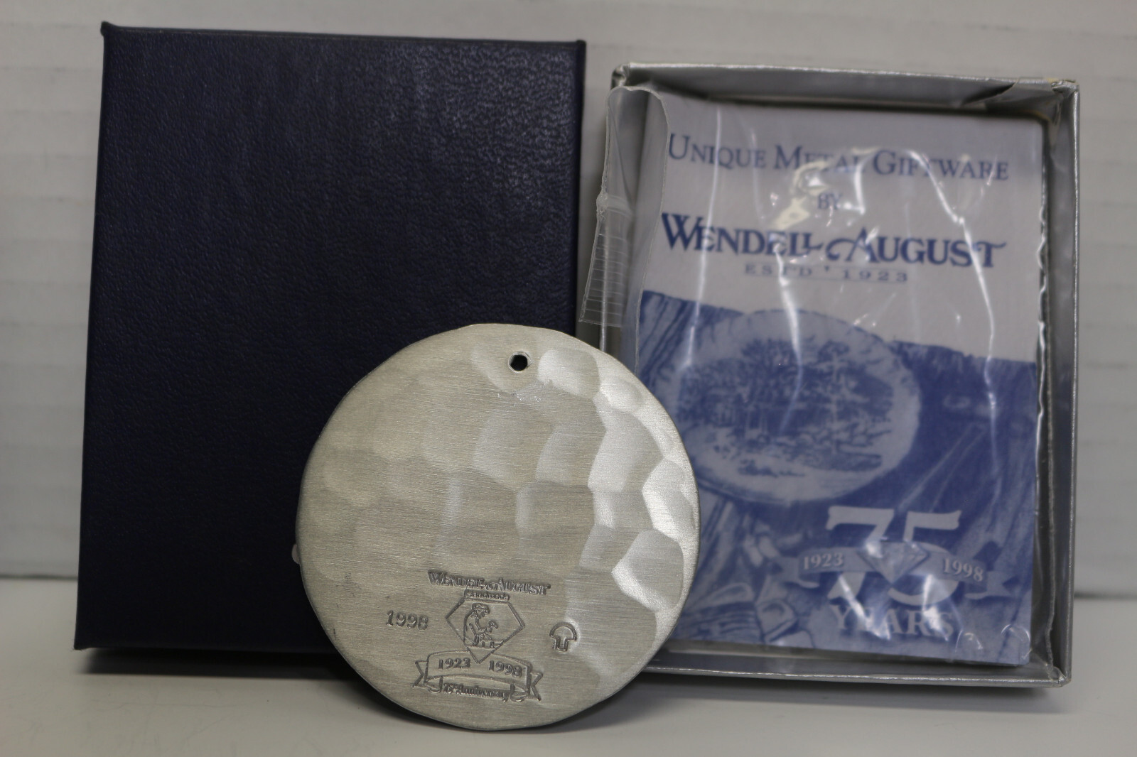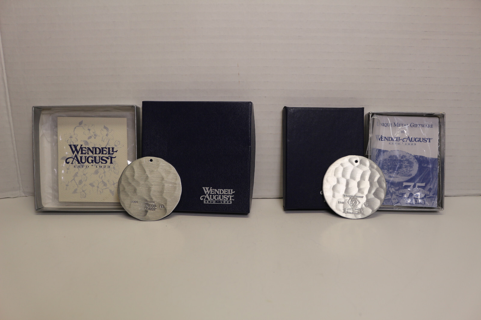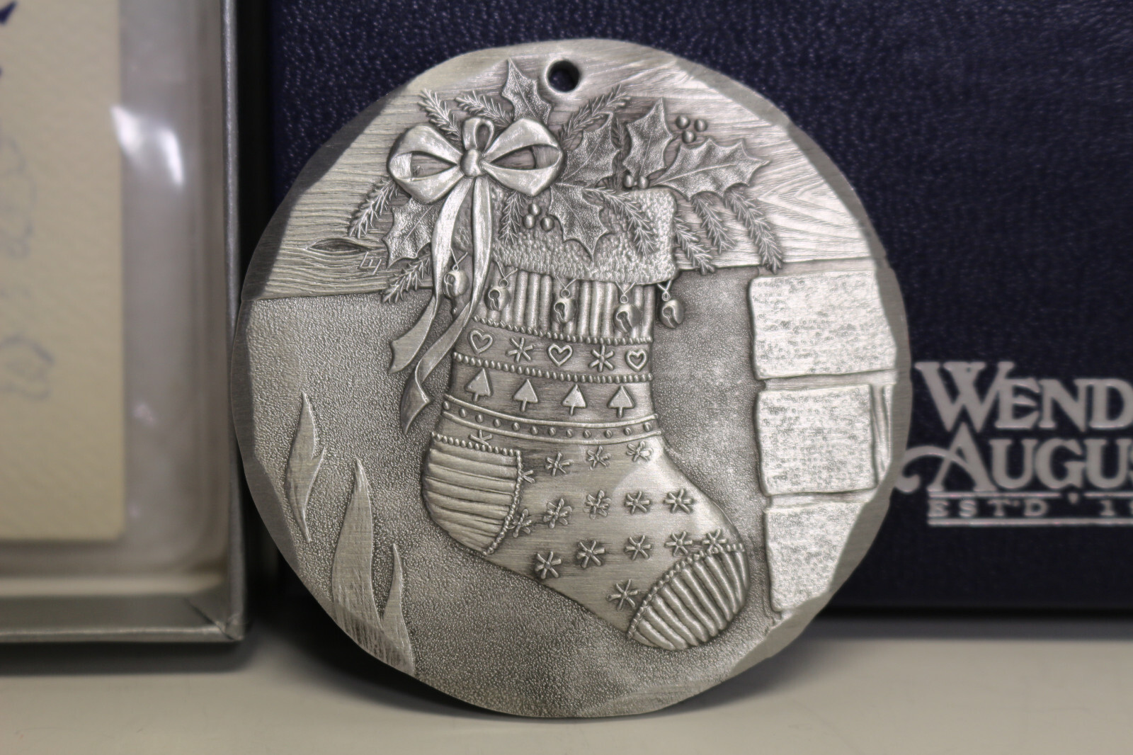 Wendell August 2 Aluminum Christmas Ornament 1998 Angel Manger, 2008 Stocking