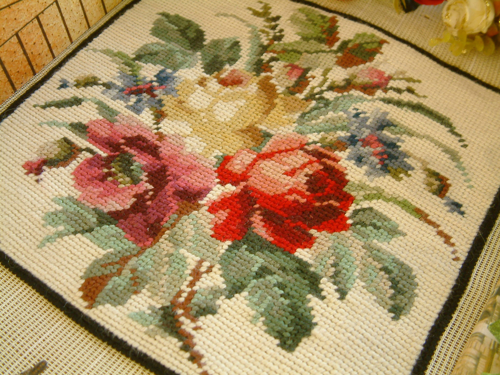 как выглядит Completed Needlepoint Canvas Hand Crafted Beautiful Floral Theme Roses Buds фото