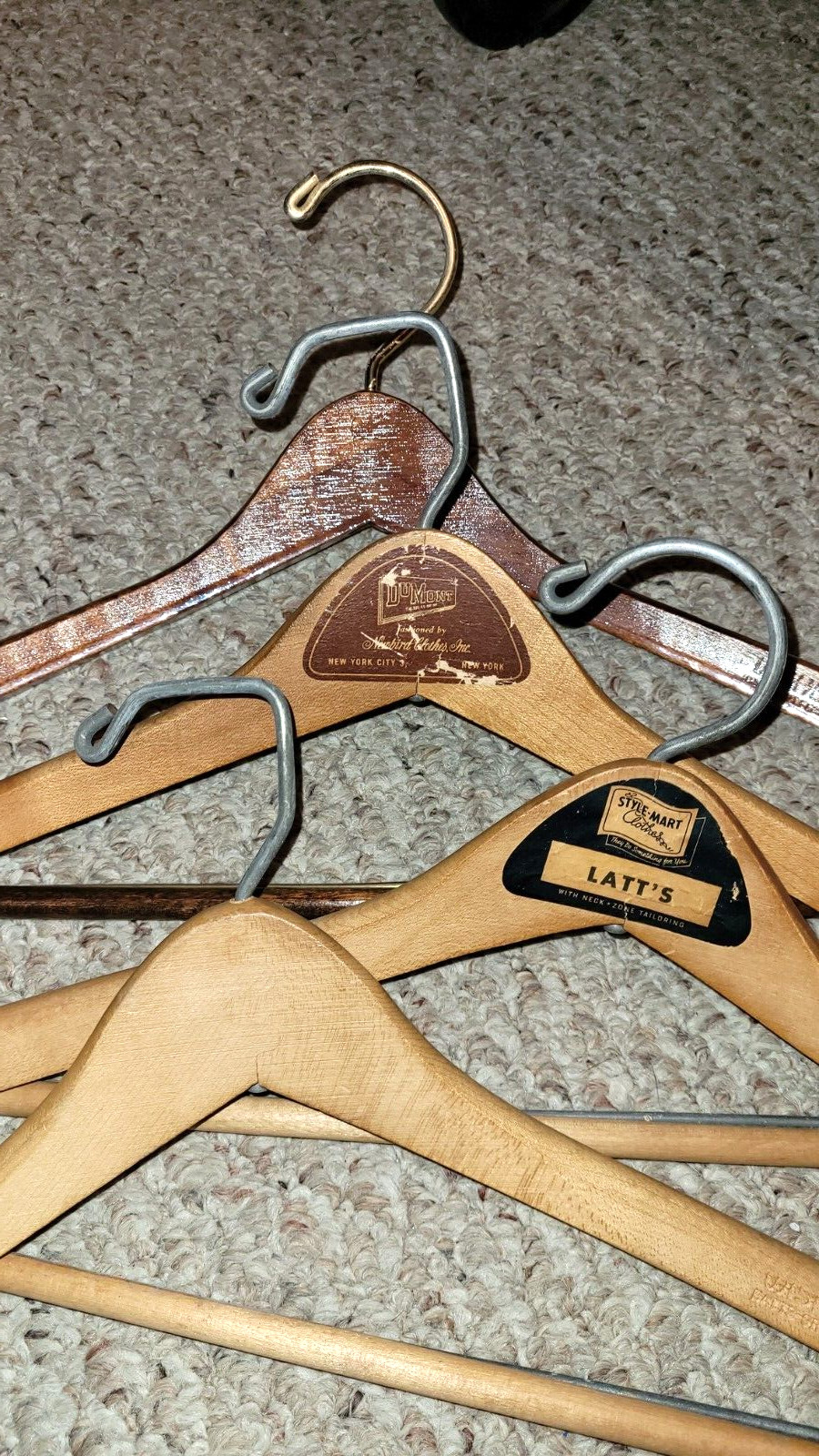 Vintage WISHBONE Wooden Hangers Lot of 4 - STYLE MART LATT'S / DUMONT