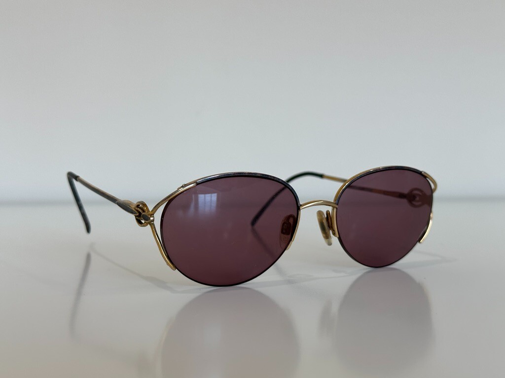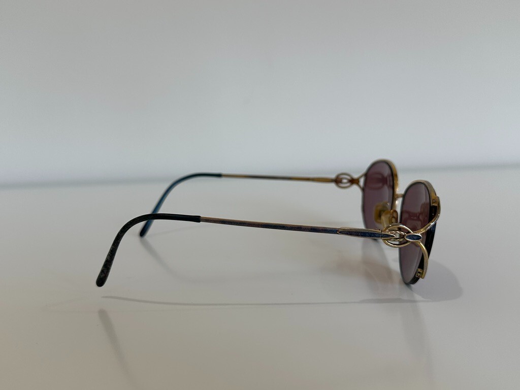 как выглядит Vintage Japan Half Rim Gold Blue Eyeglasses Sunglasses 55-17 FRAME ONLY фото