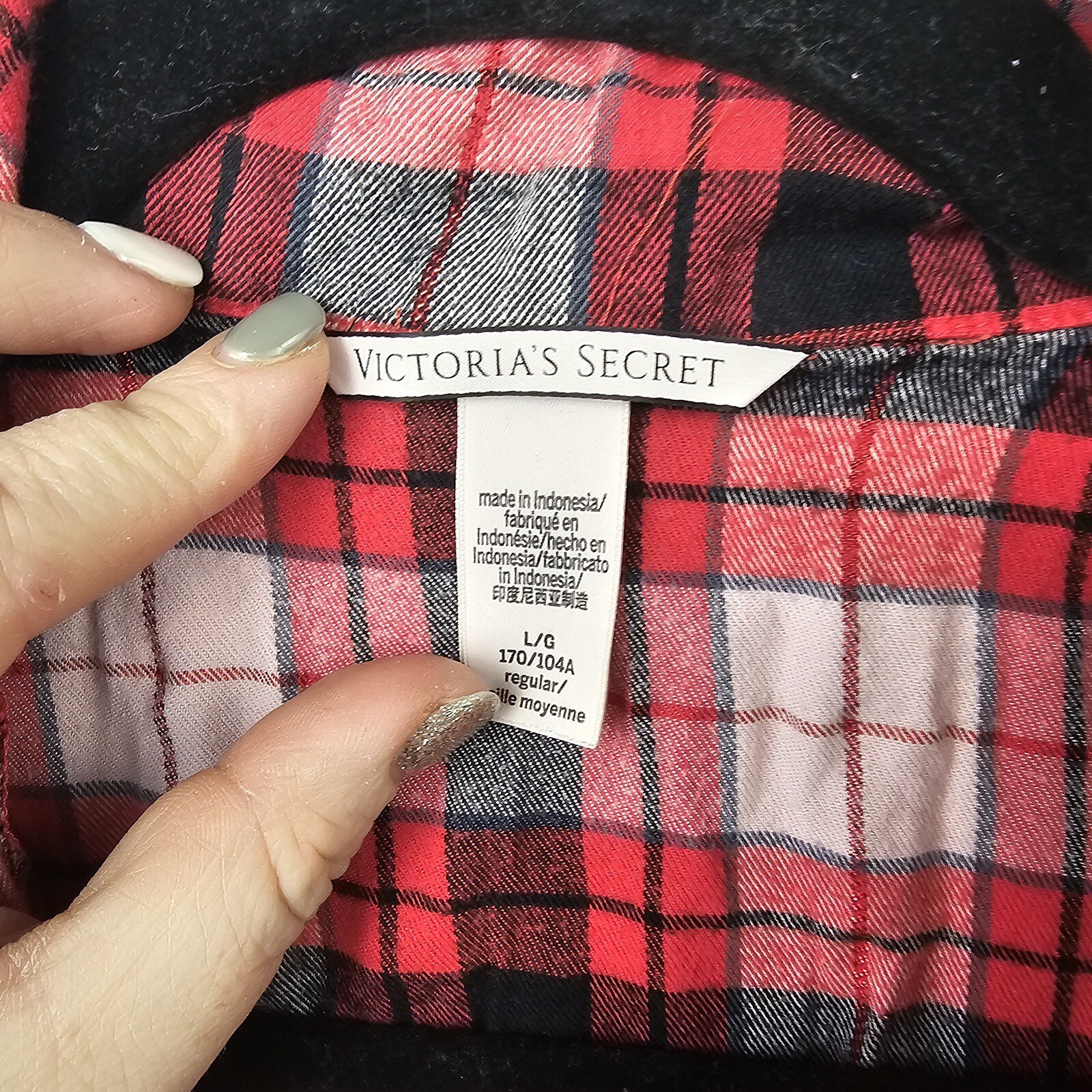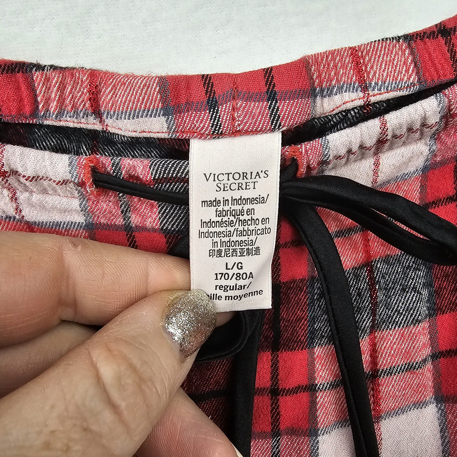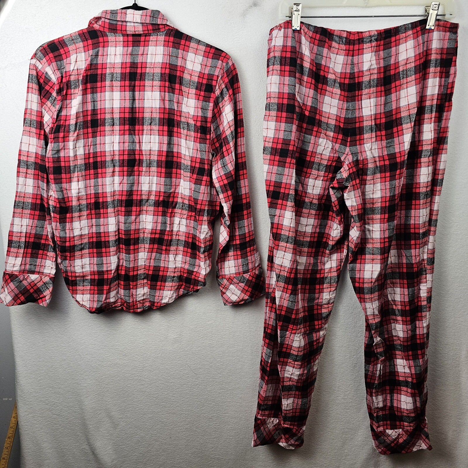 как выглядит Victoria s Secret Pajama Set Woman s Size Large Red Plaid Long Sleeve Top Pants фото