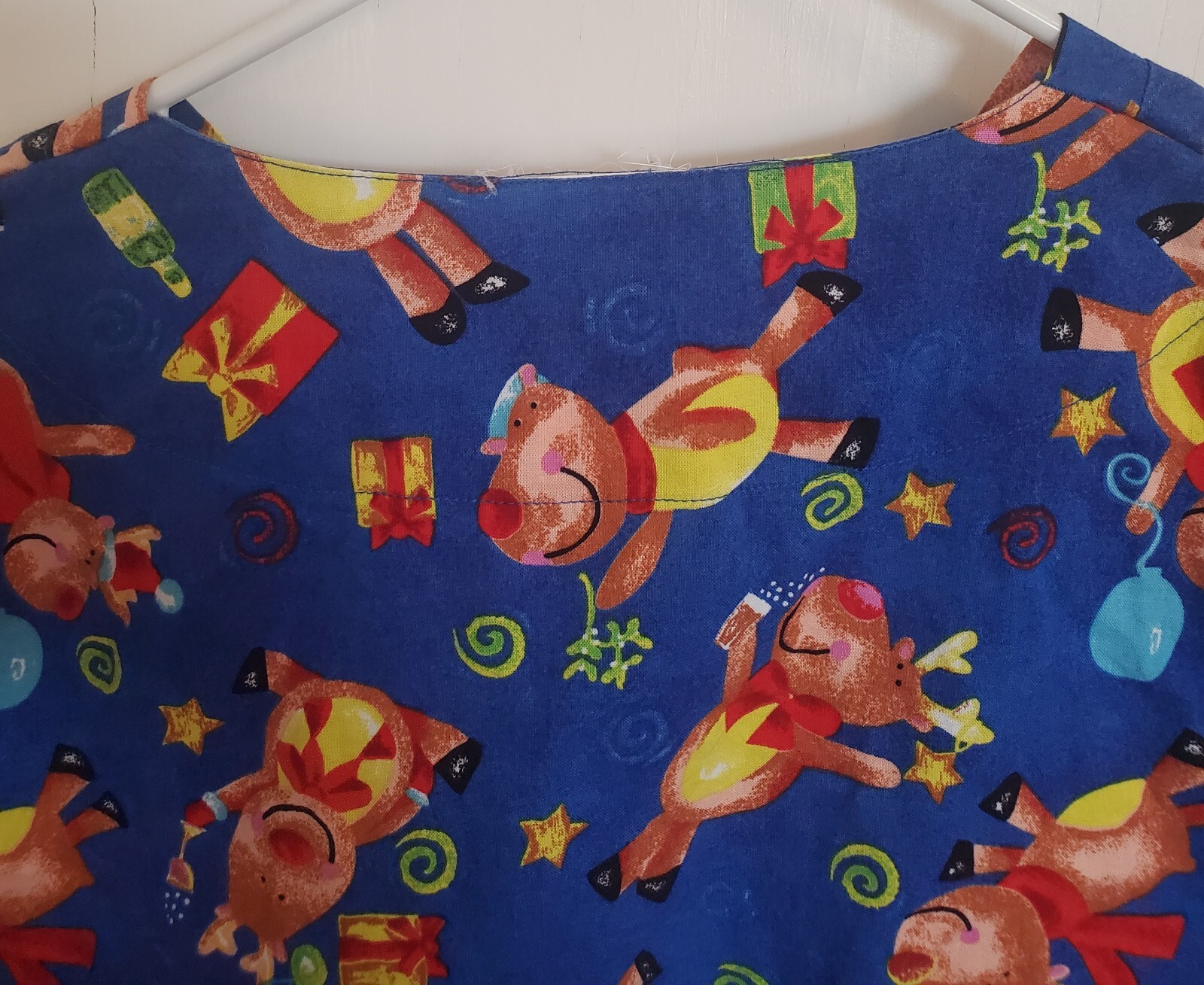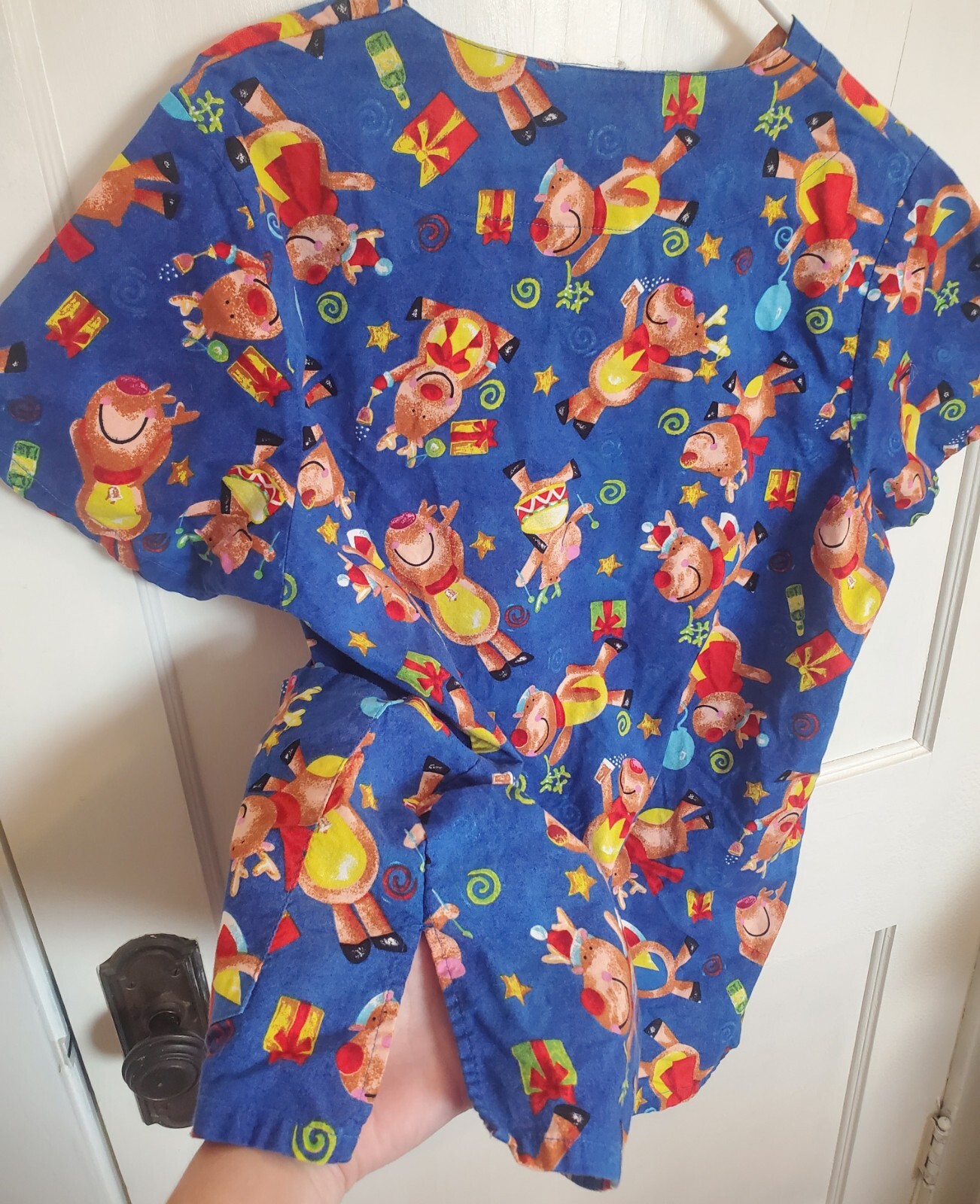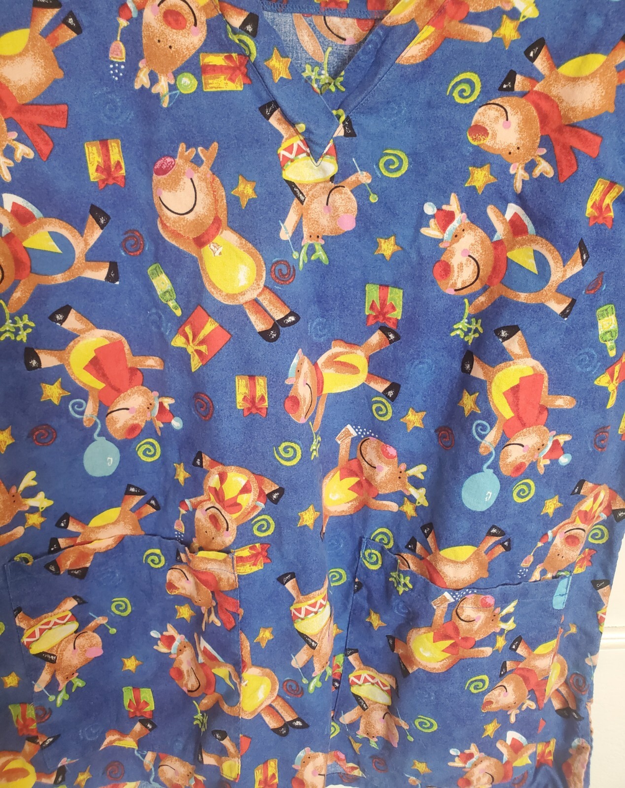 RUDOLPH Christmas Medical Scrub Top Red Nosed Reindeer Size M blue Allheart