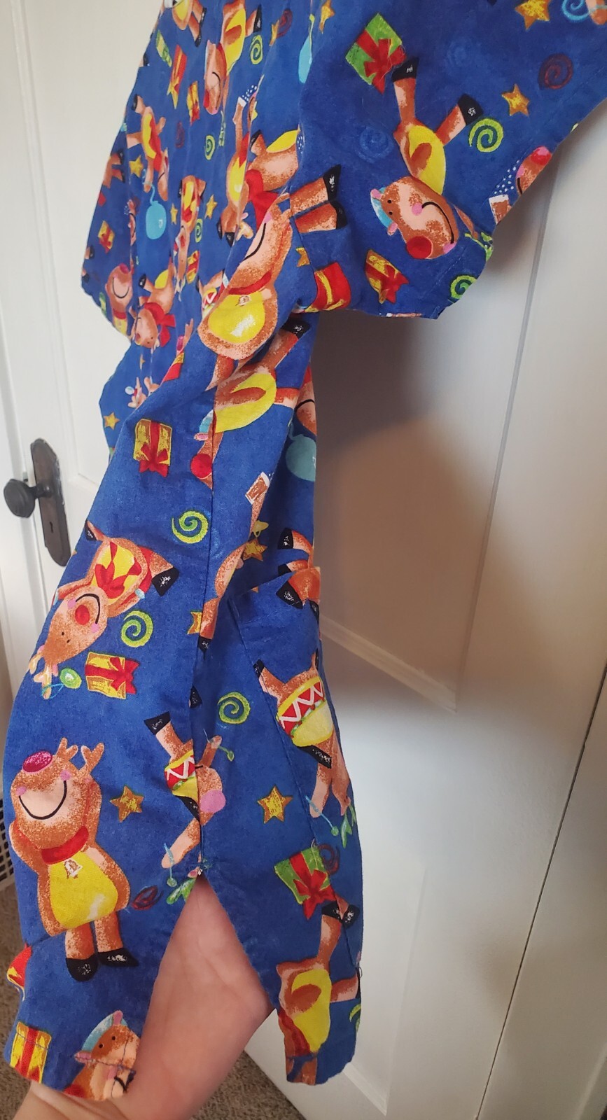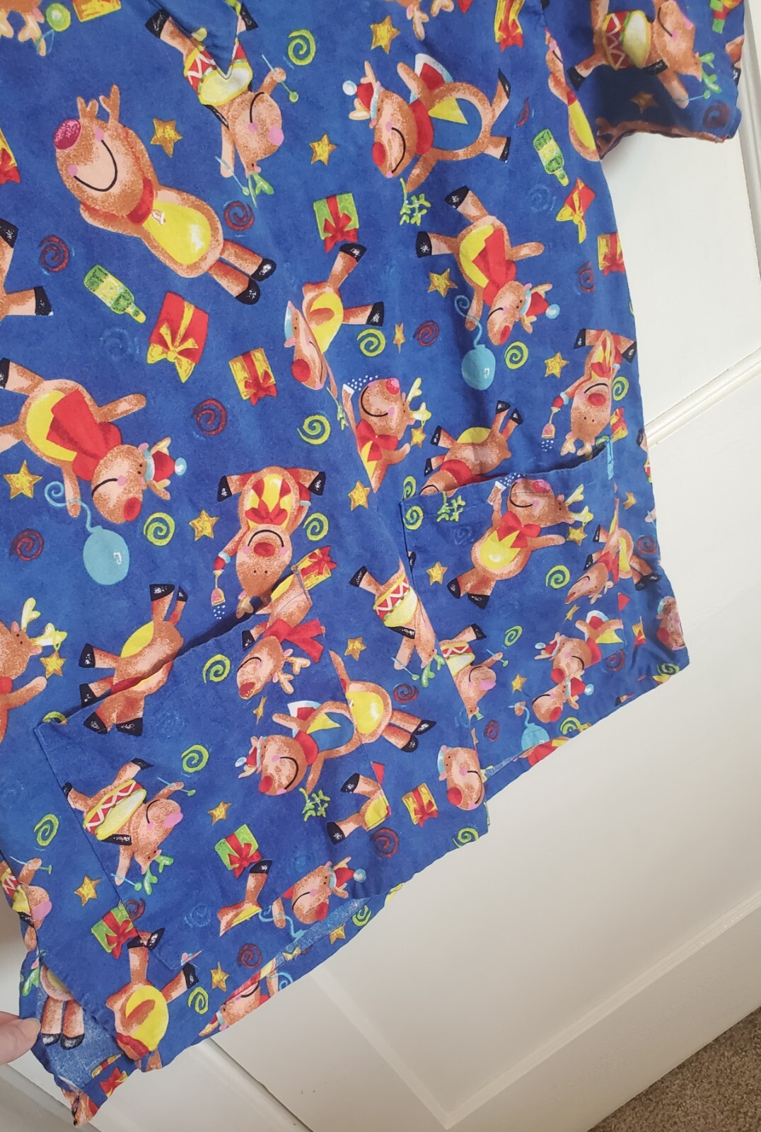 как выглядит RUDOLPH Christmas Medical Scrub Top Red Nosed Reindeer Size M blue Allheart фото