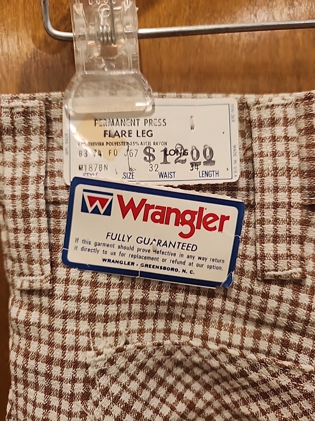 как выглядит Vintage Wrangler Flare Pants Size 32x34 Brown and White Deadstock NWT фото