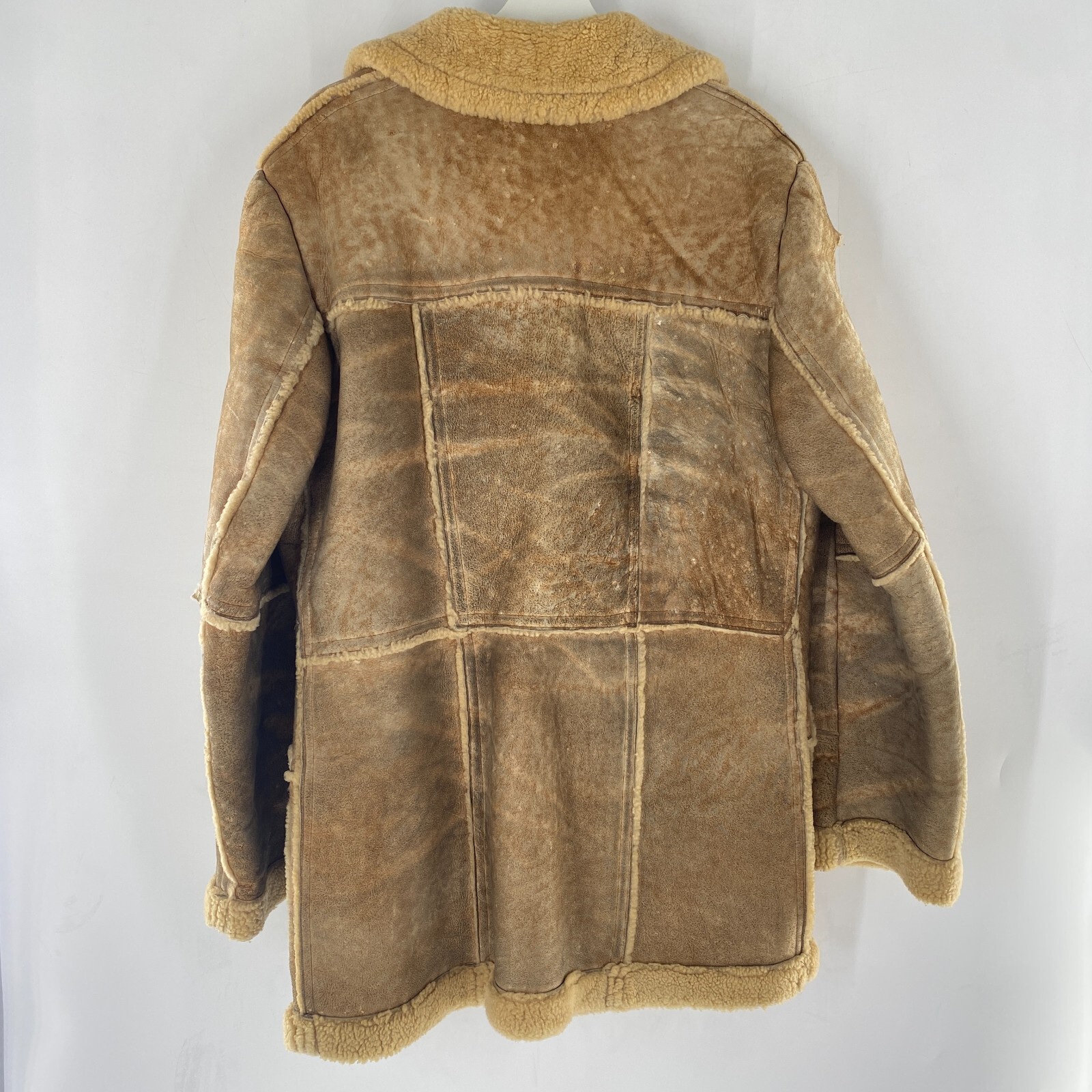 VTG Rugged Real Sheepskin Shearling Fur Jacket Coat Marlboro Man w TEARS Sz M 42