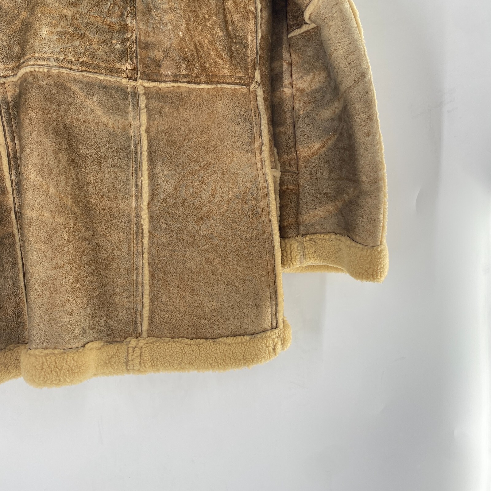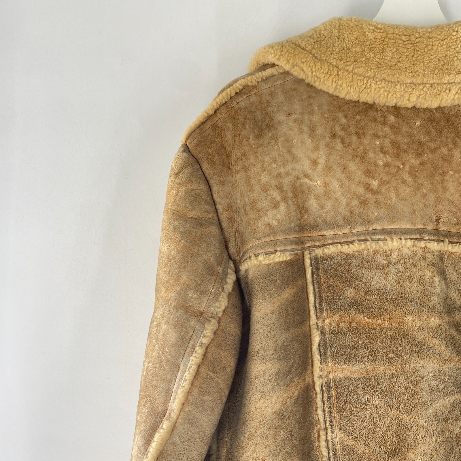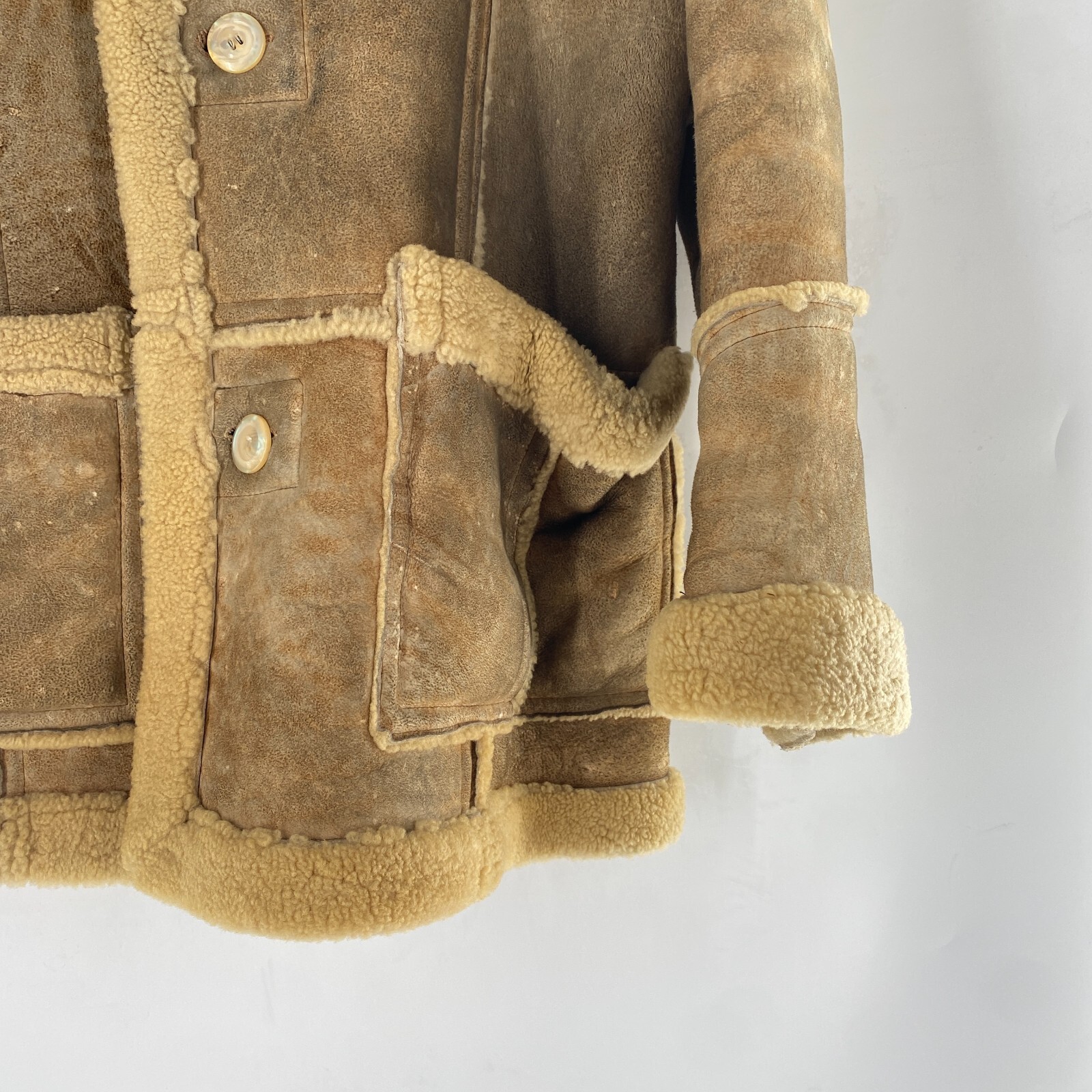 как выглядит VTG Rugged Real Sheepskin Shearling Fur Jacket Coat Marlboro Man w TEARS Sz M 42 фото