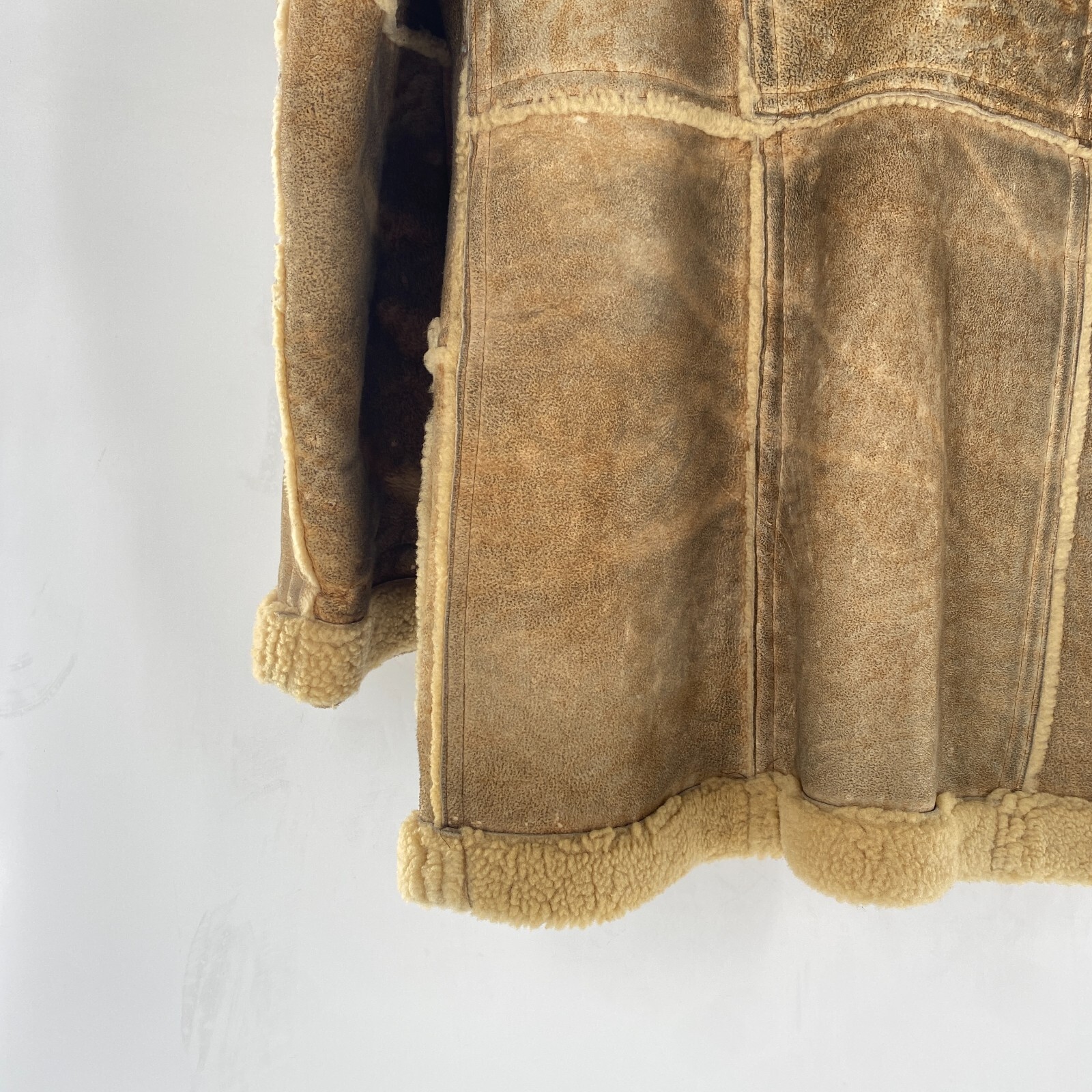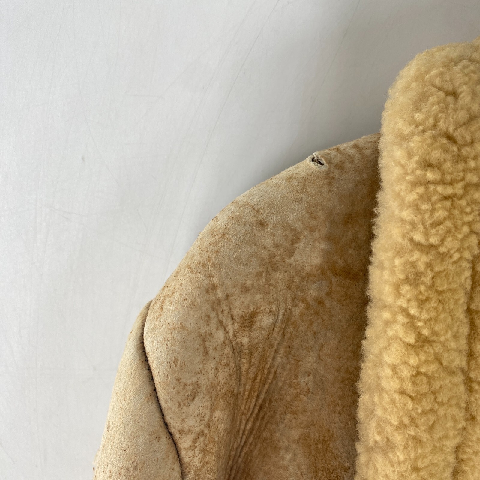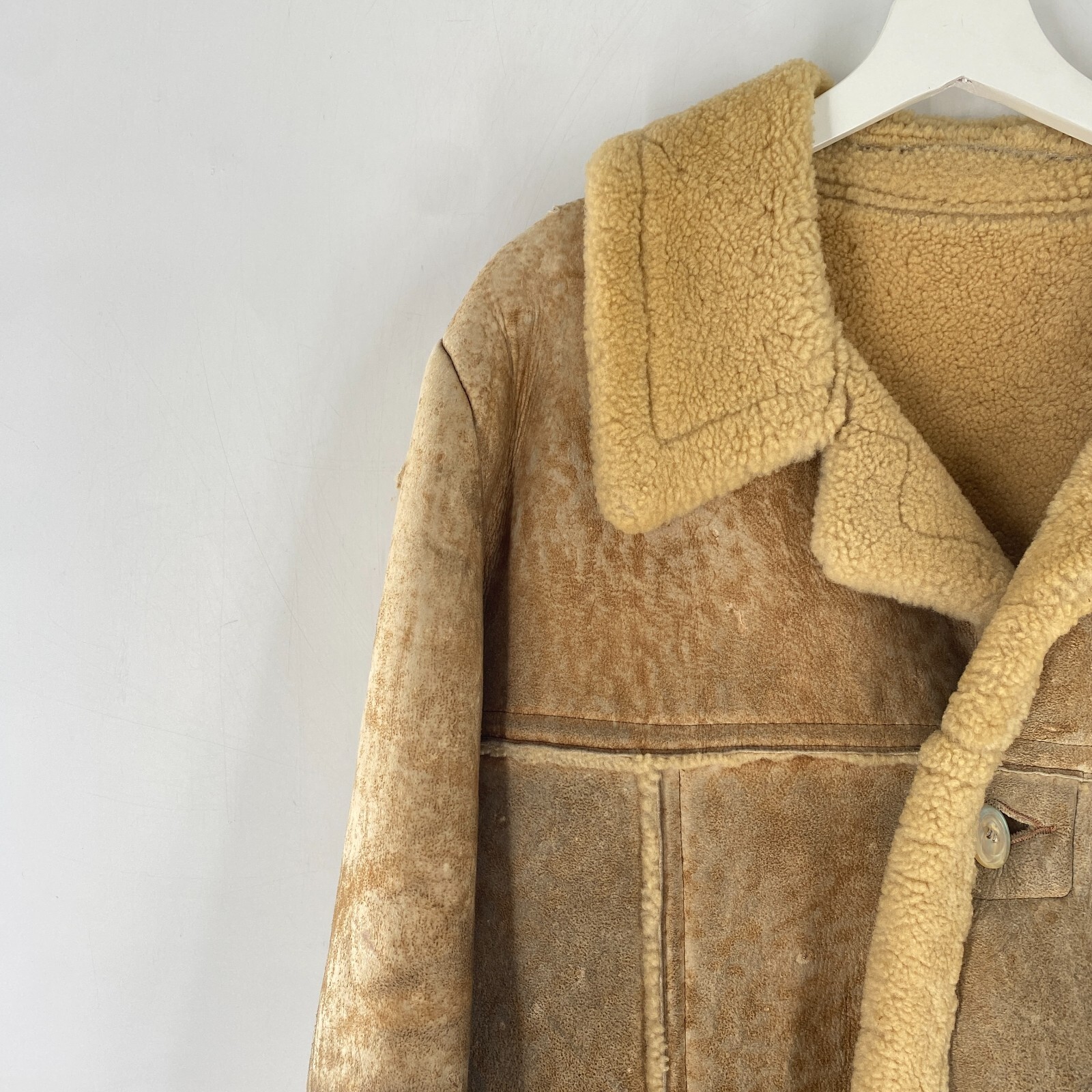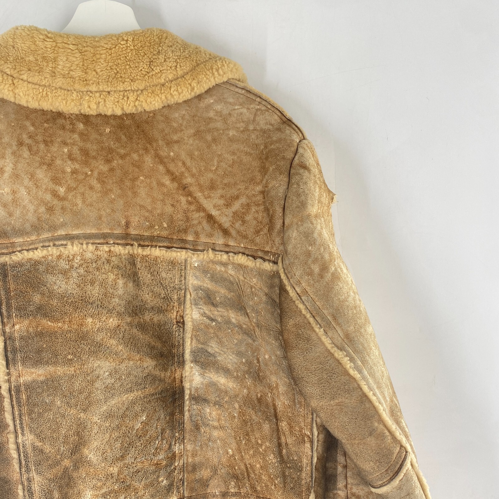 как выглядит VTG Rugged Real Sheepskin Shearling Fur Jacket Coat Marlboro Man w TEARS Sz M 42 фото