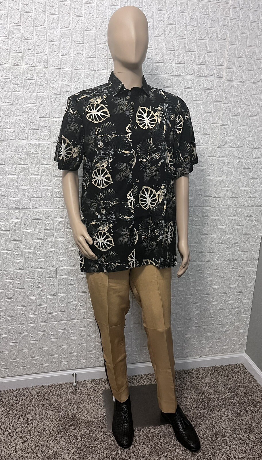 как выглядит Mens Vintage 2-Piece Outfit Set  Leaf Print Shirt Tan Pants with Stripe фото