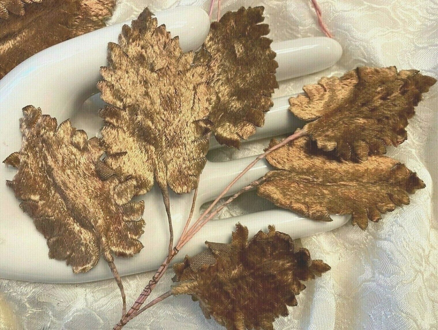 как выглядит vintage millinery 1940s velvet leaves caramel 1 spray made in Germany фото